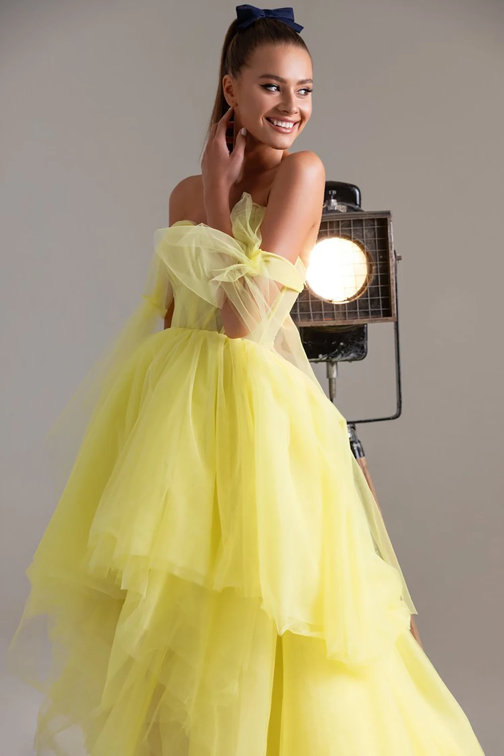 Sevintage желтые двухярусные платья для милой вечевечерние с открытыми плечами для официальной вечеринки