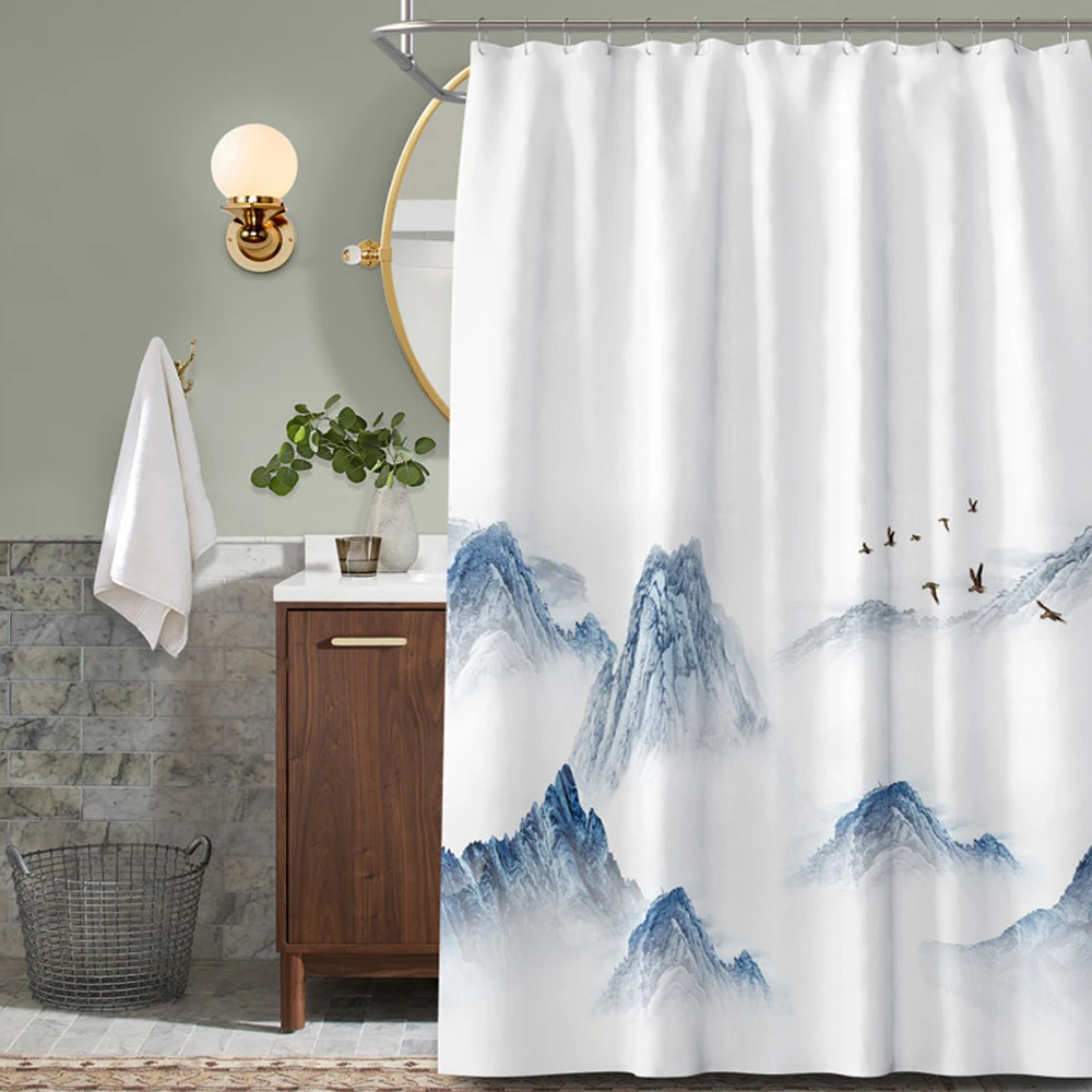 Занавеска для душа в китайском ландшафтном стиле, водонепроницаемая моющаяся Шторка для ванной из ткани с живописным рисунком, разные размеры