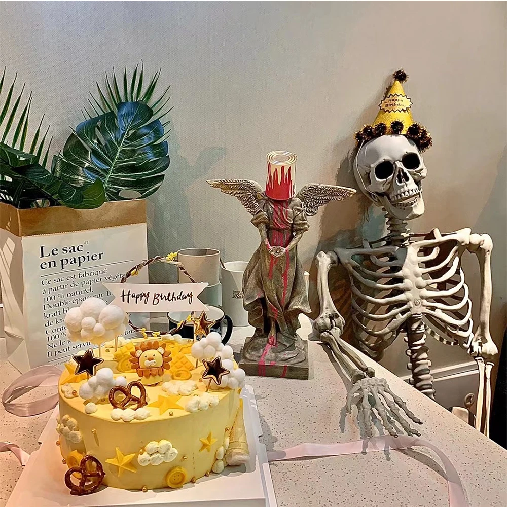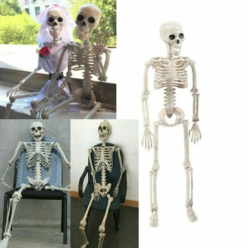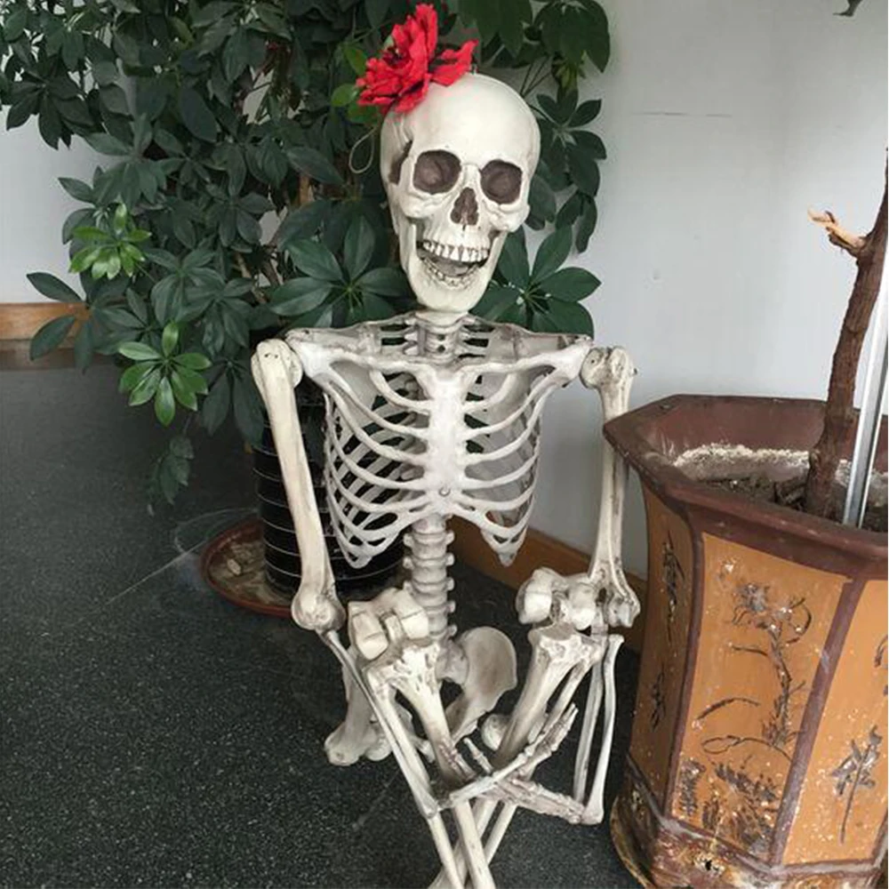 Скелет человека на Хэллоуин, подвесной реквизит для дома с привидениями, украшение для вечевечерние, страшные подвижные украшения с большим черепом, 1 шт.