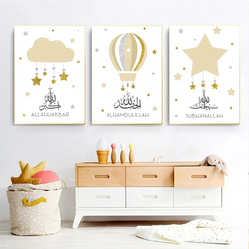 Исламские синие золотые звезды воздушный шар Детская фотокартина на холсте Настенная картина для детской комнаты домашний декор icon star icon star icon star icon star icon star