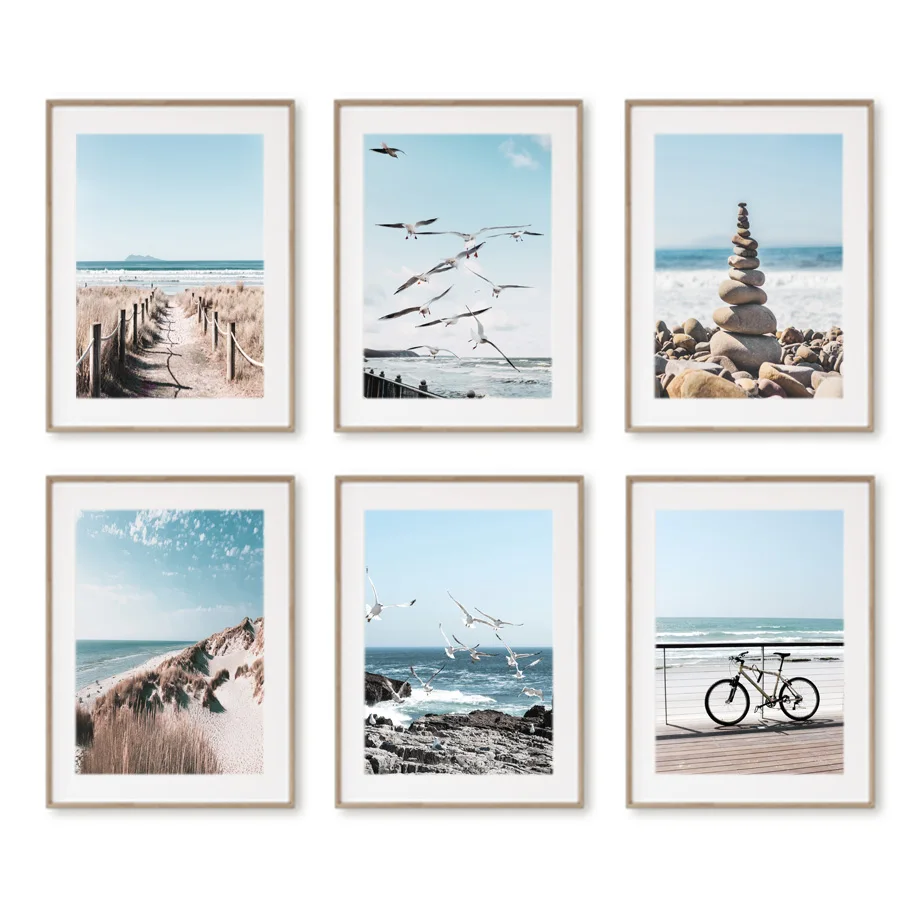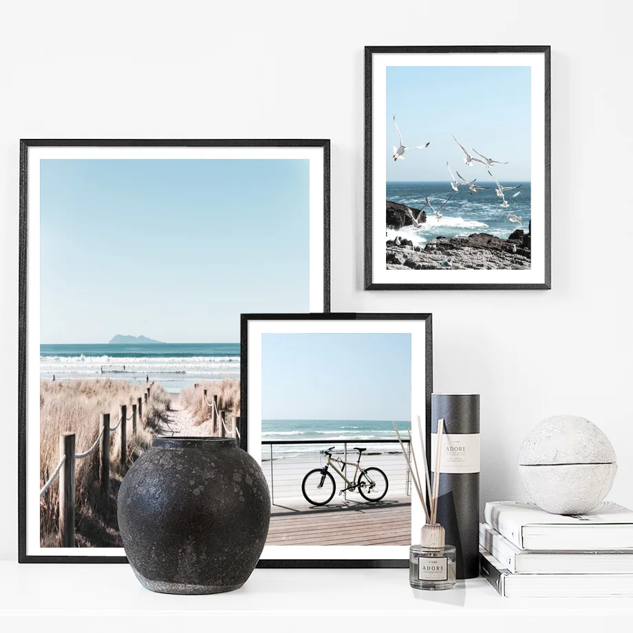 Ранняя осень, морские волны, морской пляж, тростниковый велосипед, скандинавский стиль, настенная живопись, холст, постеры и принты, декор для гостиной