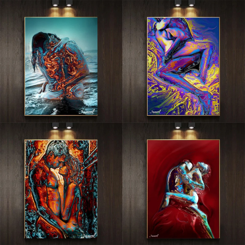 Абстрактная Картина на холсте с изображением сексуальных мужчин и женщин, плакаты и принты обнаженных влюбленных, настенные картины для гостиной, домашний декор без рамки
