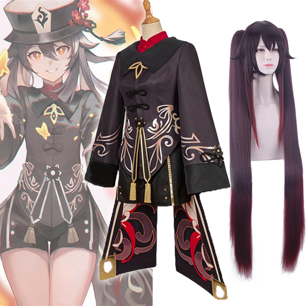 Аниме игра Genshin Impact Ху Тао косплей костюм парики Loli наряд для вечеринки униформа для женщин Хэллоуин Карнавальный подарок костюмы
