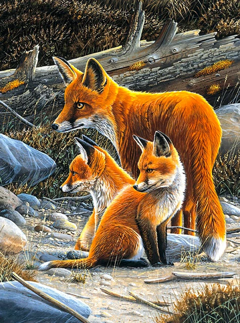 Алмазная вышивка с изображением лисы, квадратныхкруглых животных, н...