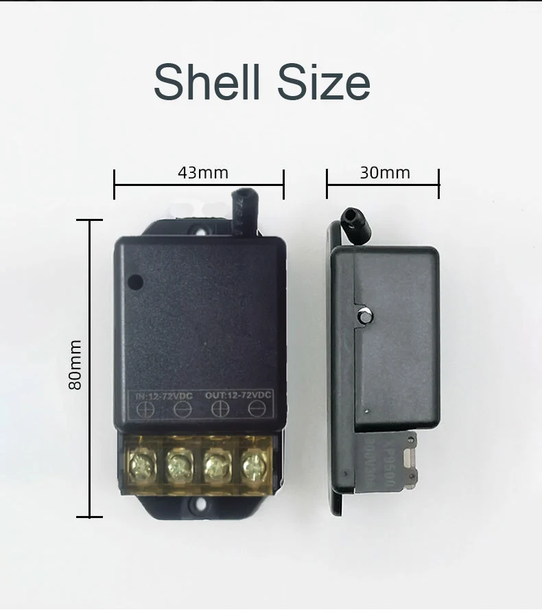 4., Режим задержки времени:Нажмите кнопку дистанционного управления, реле подключается, от когда отпустите кнопку дистанционного управления, после 5s или 10s или 15s или 20s, реле отключается автоматически.5,Автоматическое включение при включении:Когда источник питания, реле подключается.