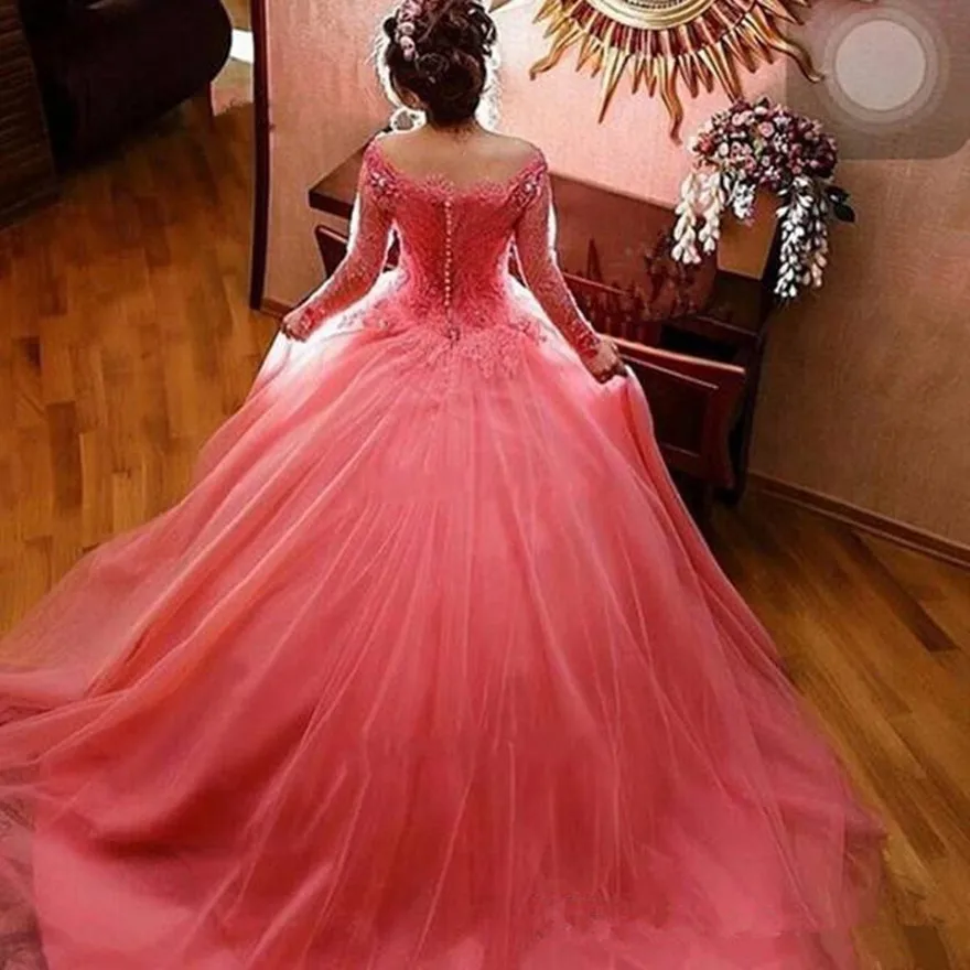 Кружевное бальное платье с длинным рукавом, на пуговицах