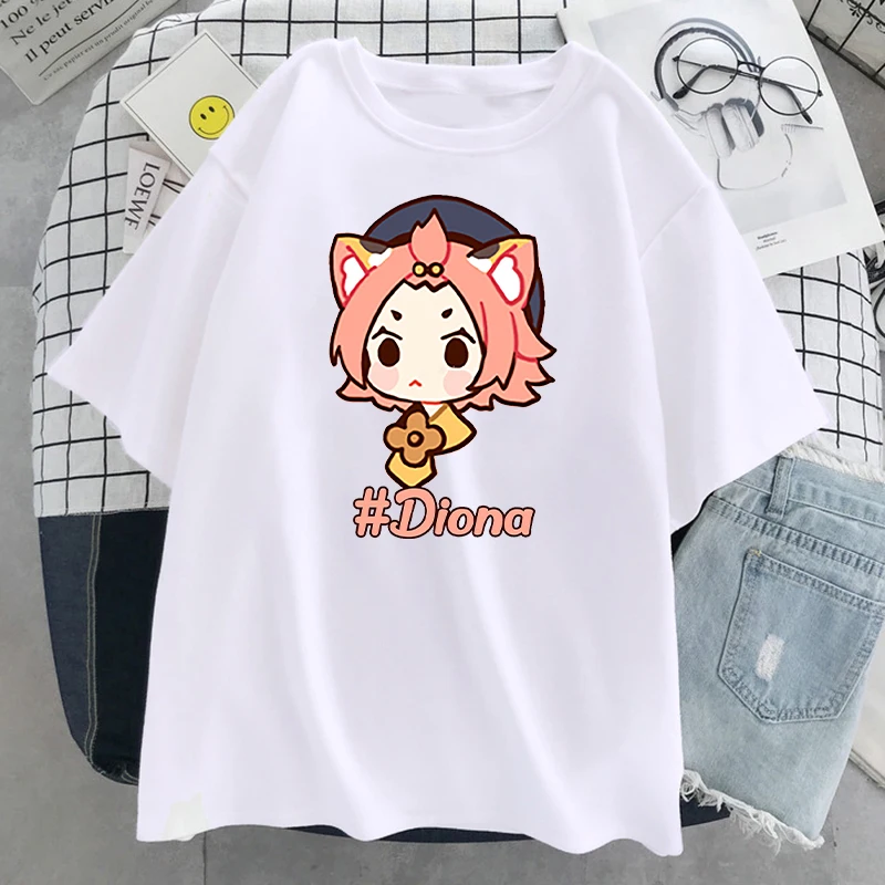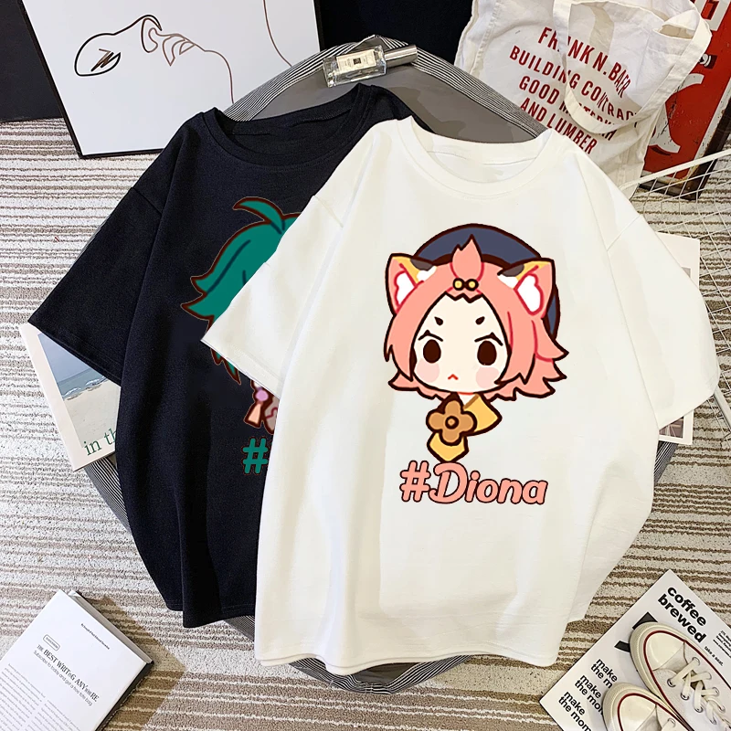 Милые футболки с принтом игры Genshin Ganyu Barbatos Xiao, Мультяшн...