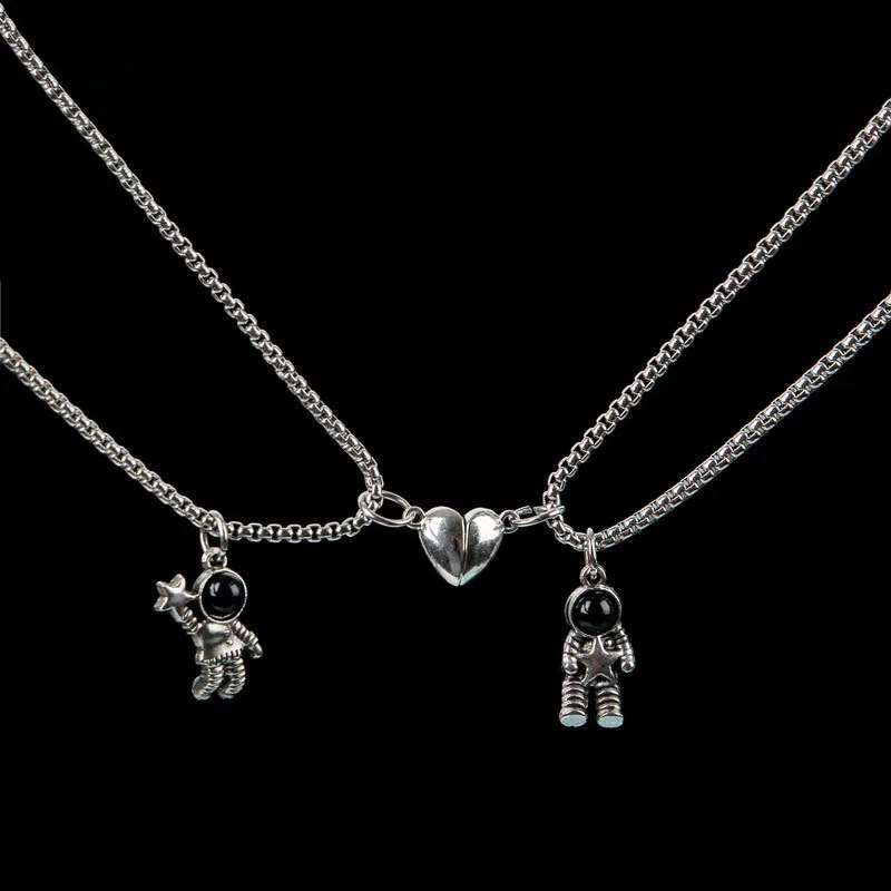 Подвеска в виде астронавта, магнитное ожерелье для влюбленных, притянутое сердце, ожерелье из нержавеющей стали для женщин и мужчин, ожерелье с космическим рисунком, ювелирное изделие в подарок