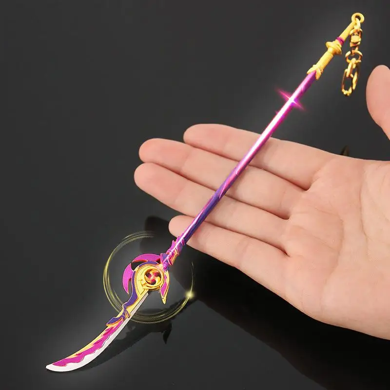 Брелок для ключей Genshin Impact Raiden Shogun, ингаляция молнией, искусственное оружие, аниме, сплав, нож, меч, модель, игрушки, металлические изделия