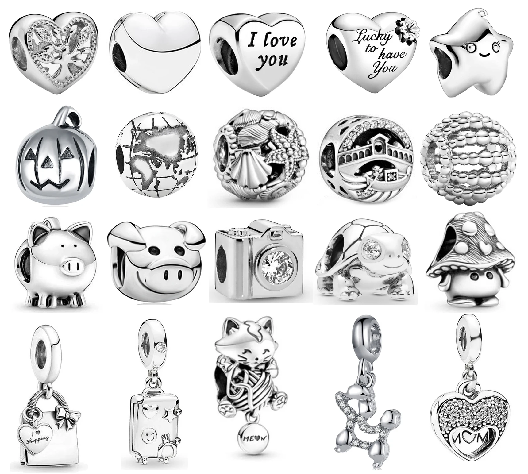Серебряный кулон в виде зубов, черепахи, сердца, камеры, собаки, подходит для браслета Pandora с подвесками сделай сам, женские оригинальные бусины, оптовая продажа, на заказ