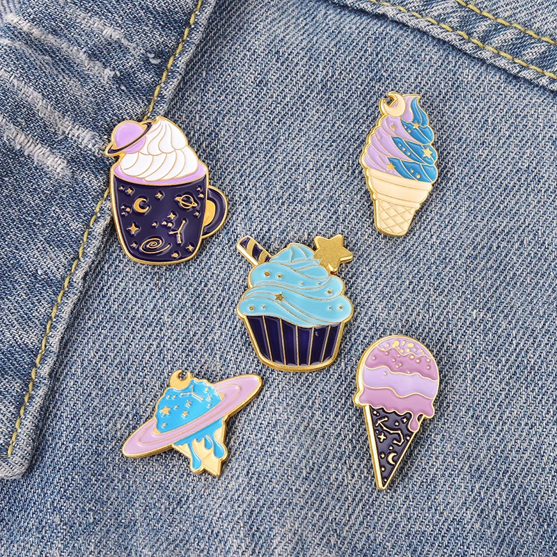 Эмалированная брошь с изображением планеты, мороженого, капкейка, десерта, Значки для сумки, одежды, мультяшный игривый подарок для детей, украшения Вселенная