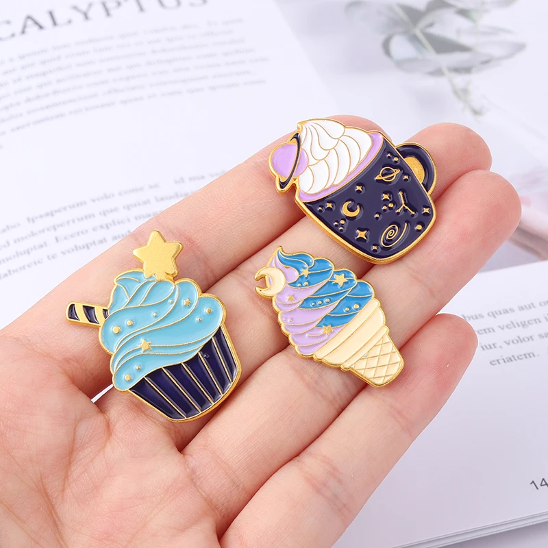 Мультяшные милые эмалевые булавки с мороженым планета звезды чашка ...