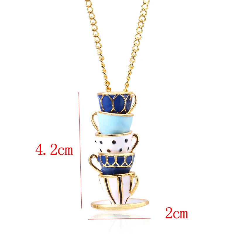 Красивое ожерелье с подвеской в виде чайных чашек, модное эмалирова...