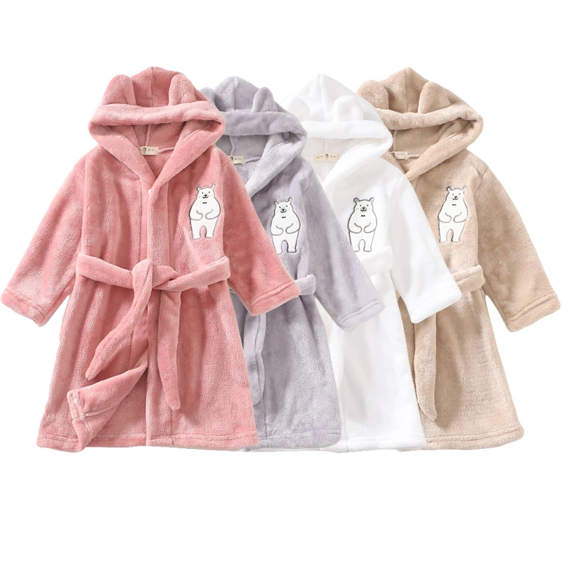 Детский халат на шнуровке с капюшоном, зимняя Пижама для маленьких мальчиков и девочек, халаты, одежда для сна с мультяшными животными для девочек и мальчиков, халат, одежда для девочек