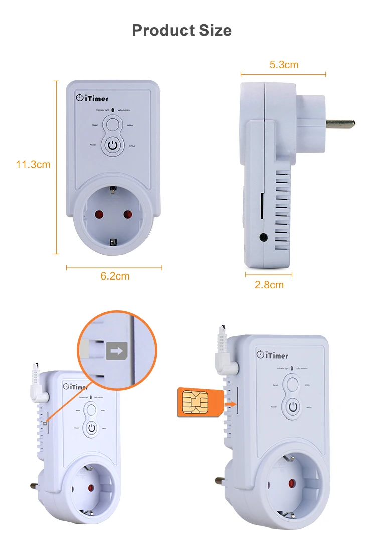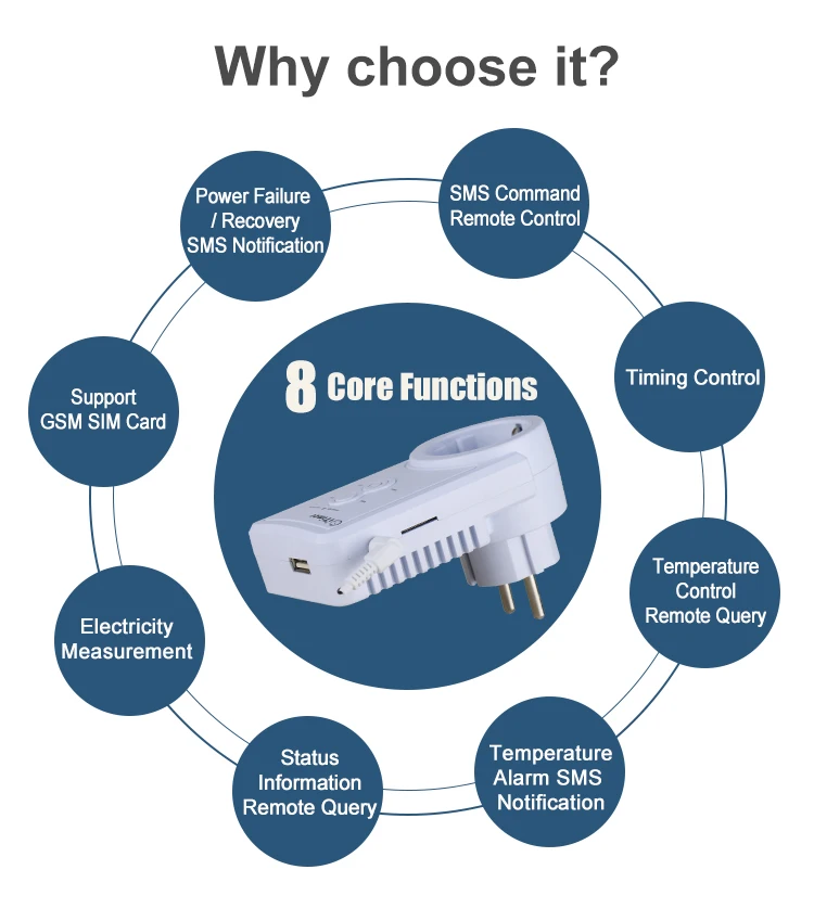 Умная розетка с вилкой на русском и английском языках, розетка с датчиком температуры, SMS контроль, поддержка sim-карты