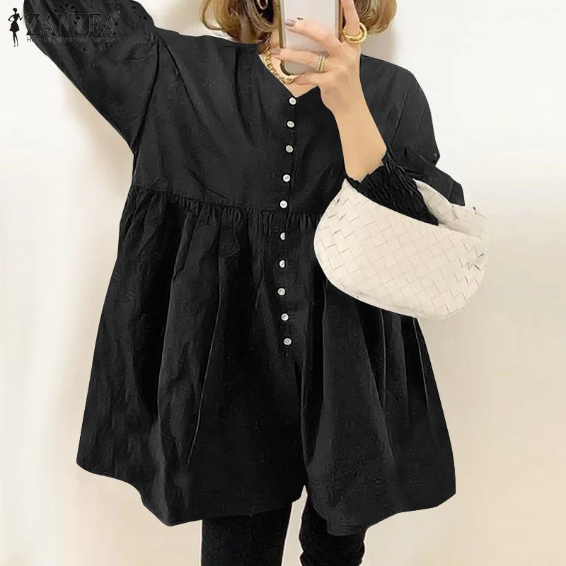 Осенние винтажные повседневные топы ZANZEA с длинным Расклешенным р...