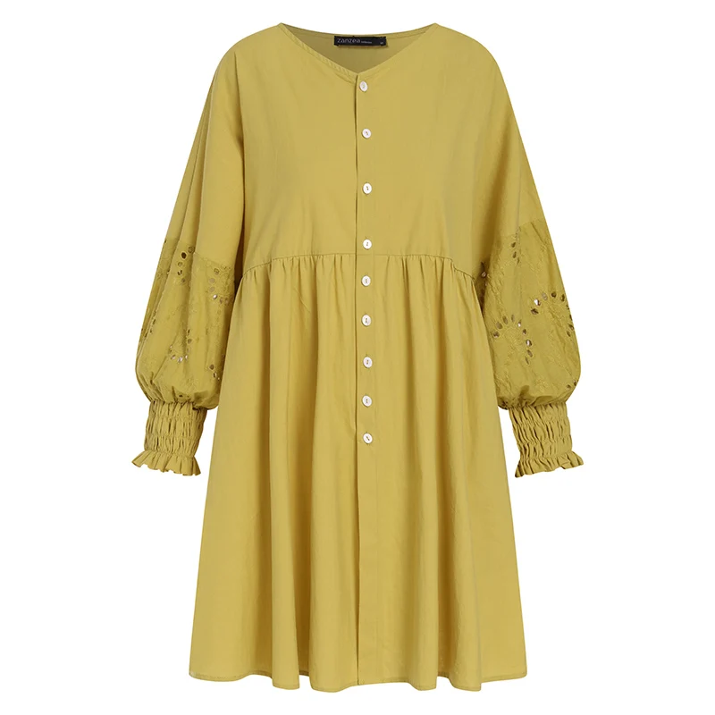 Платье ZANZEA женское ТРАПЕЦИЕВИДНОЕ с длинным рукавом, элегантный ...