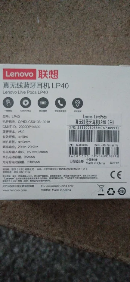 Новые оригинальные беспроводные наушники Lenovo LP40 TWS Bluetooth 5,0 двойное Стерео шумоподавление бас сенсорное управление длительный режим ожидания 300 мАч
