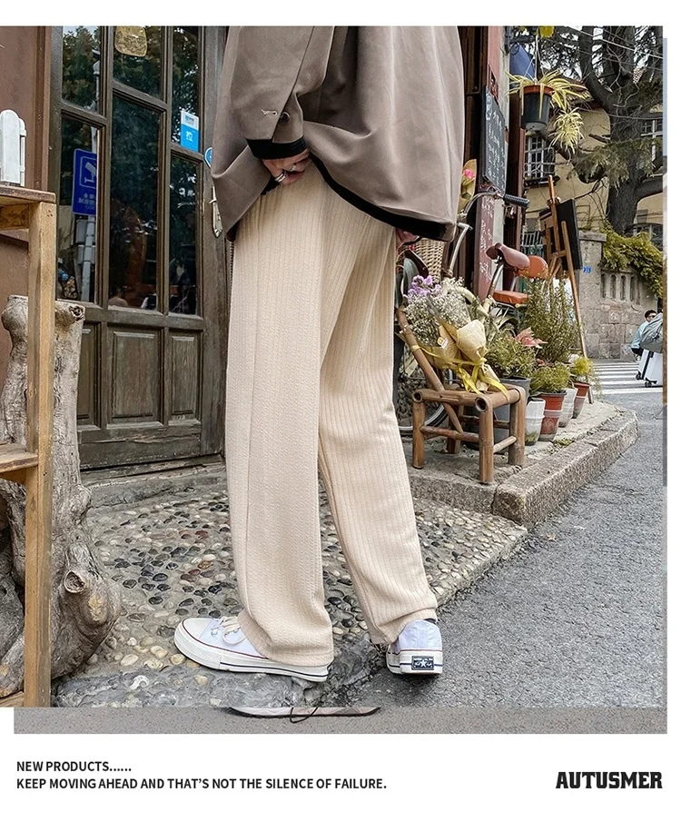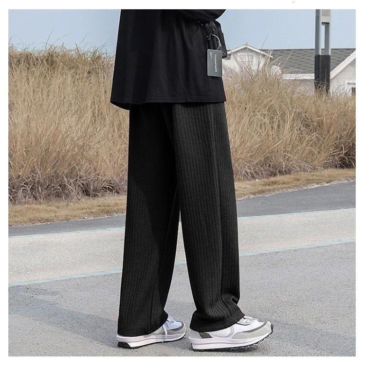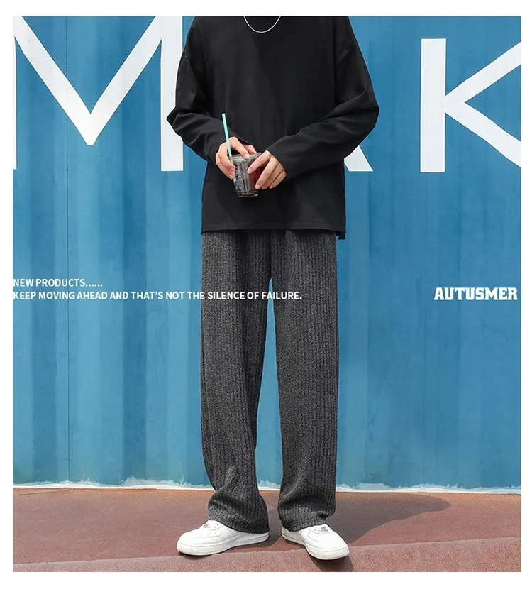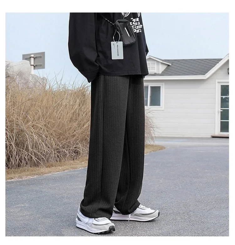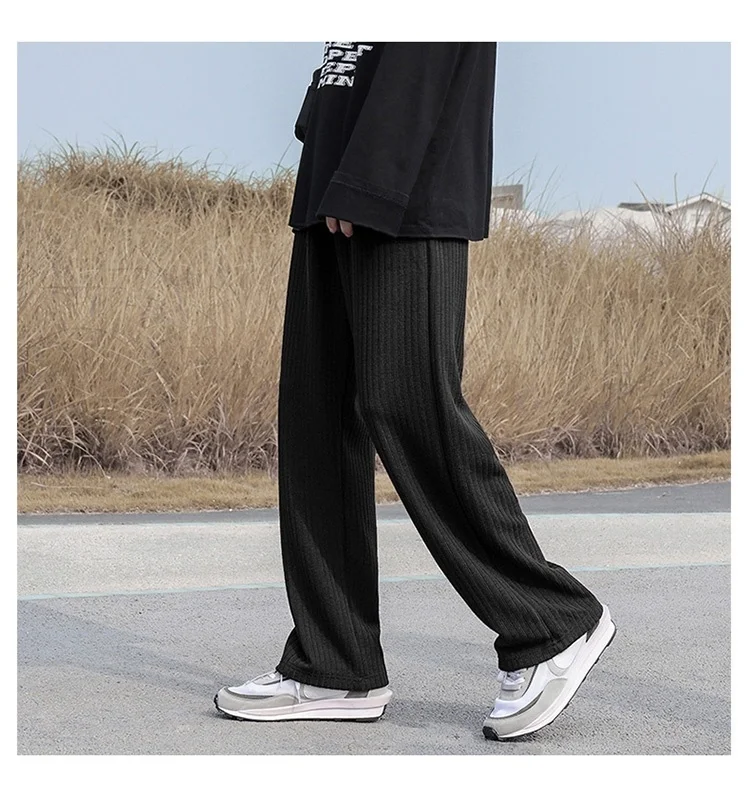Мужские трикотажные брюки Hybskr, однотонные, с широкими штанинами, свободные, прямые, на резинке, осень 2021