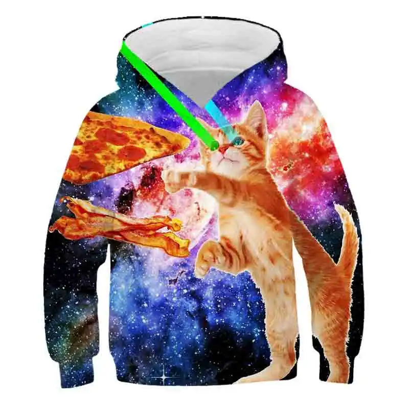 Свитшот для мальчиков и девочек, детские худи с 3D принтом Галактики, одежда для девочек, осенние свободные пуловеры с милым котом, детская одежда