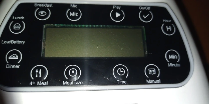 Хорошее качество товара, отмеряет точно +-1 грамм (если насыпать корм в пустую, то первый раз дозирует неправильно). В описании указан минимальный размер порции 50 грамм, но на самом деле размер порции 5-100 грамм с шагом 5 грамм. Это огромный плюс. Всего в день можно установить 4 приема пиши, каждый от 5 до 100 грамм. Поэтому кормушка не подойдёт для животных, рацион которых более 400 грамм в день. Также не подойдёт для крупного собачьего корма. Кормушкой довольны, спасибо продавцу.