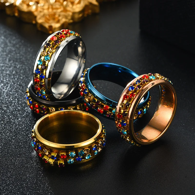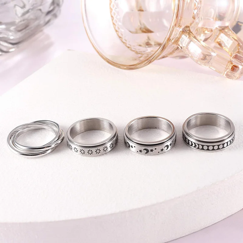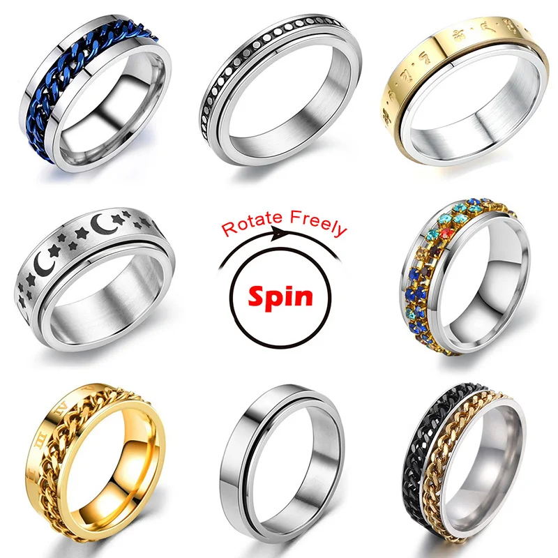 Кольцо для беспокойства из нержавеющей стали для женщин, луна, звезда, цепь, Спиннер, поворотные кольца, Свободно вращается, антистресс для мужчин, 2021 кристалл
