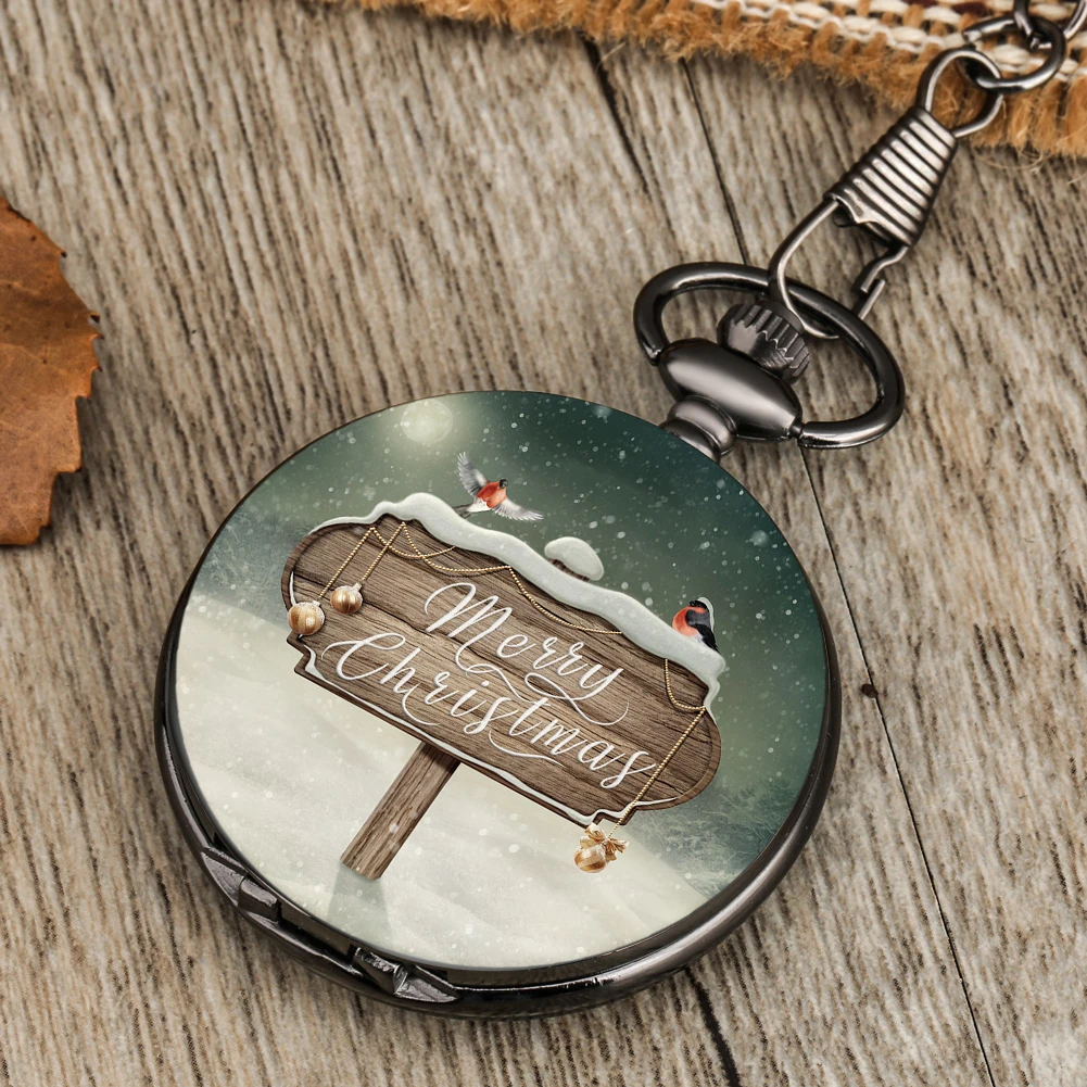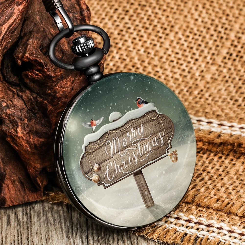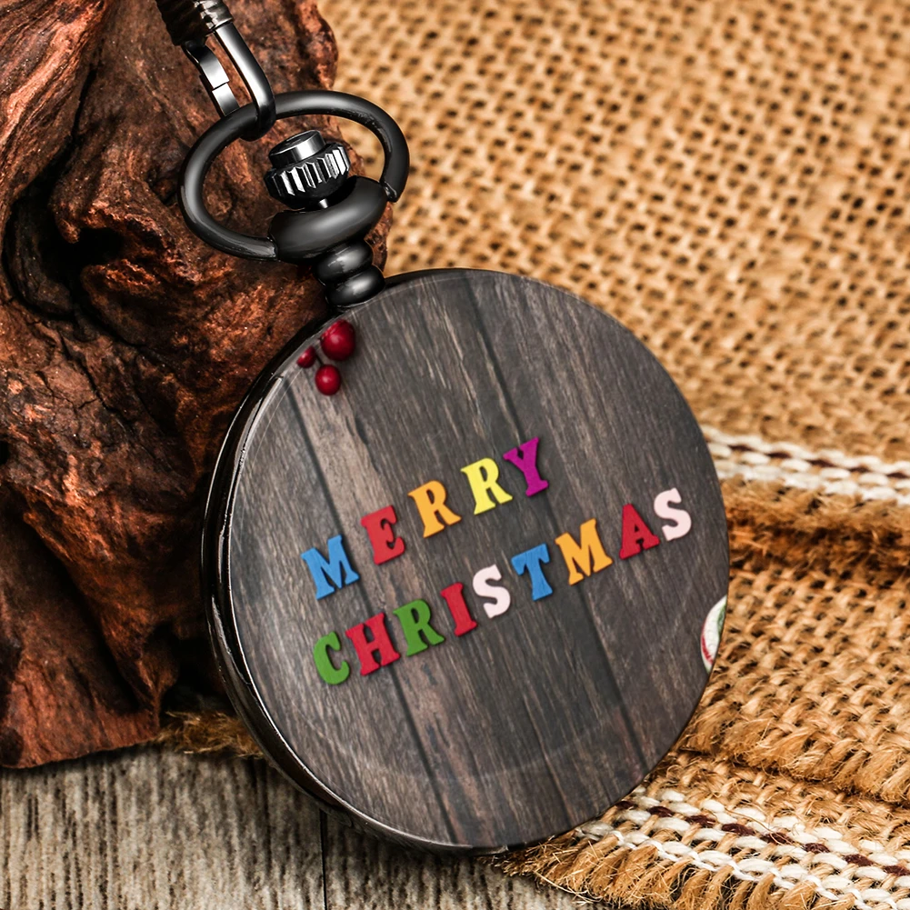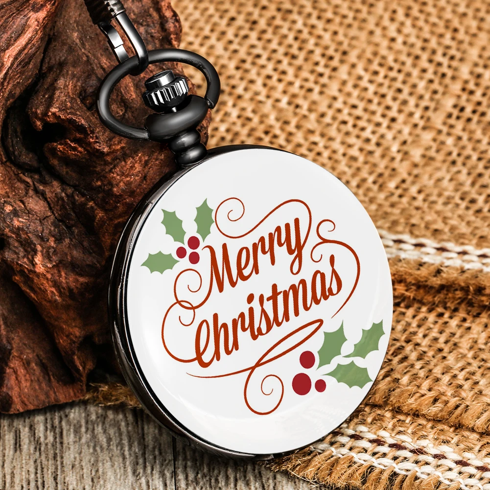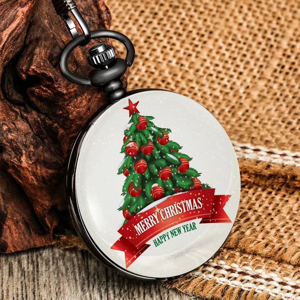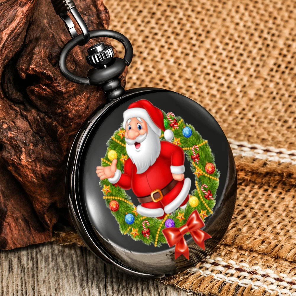 Рождественская серия Модные кварцевые карманные часы ожерелье цепоч...