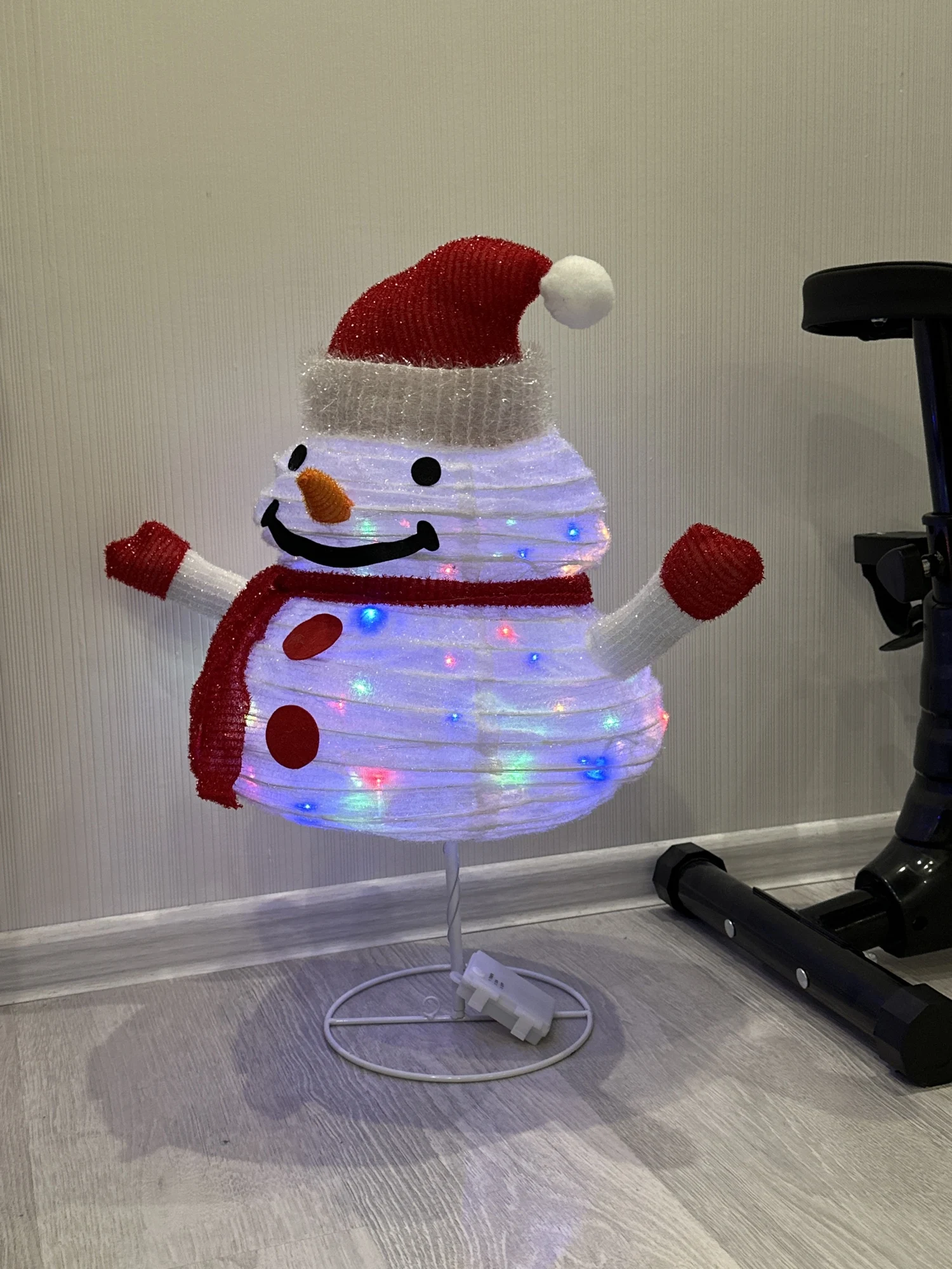 Просто подключите первый стержень к основанию, а затем подключите второй стержень к первому стержню. Затем зафиксируйте санта-клауса и снеговика. Складывается, когда не используется, экономя пространство.