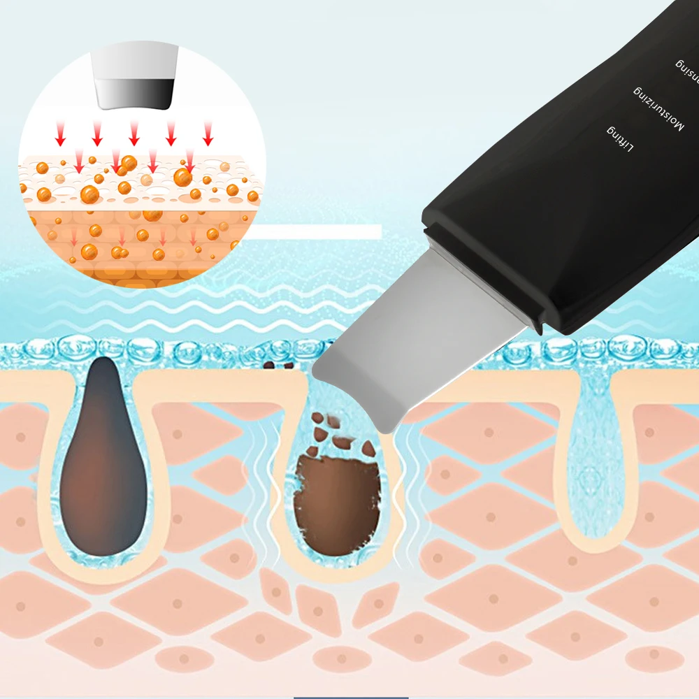 Ультразвуковой скребок для кожи, вибрирующий шпатель для лица, скребок для удаления черных точек, скребок для лица, лопатка для очистки, кавитации, пилинга, лифтинга лица