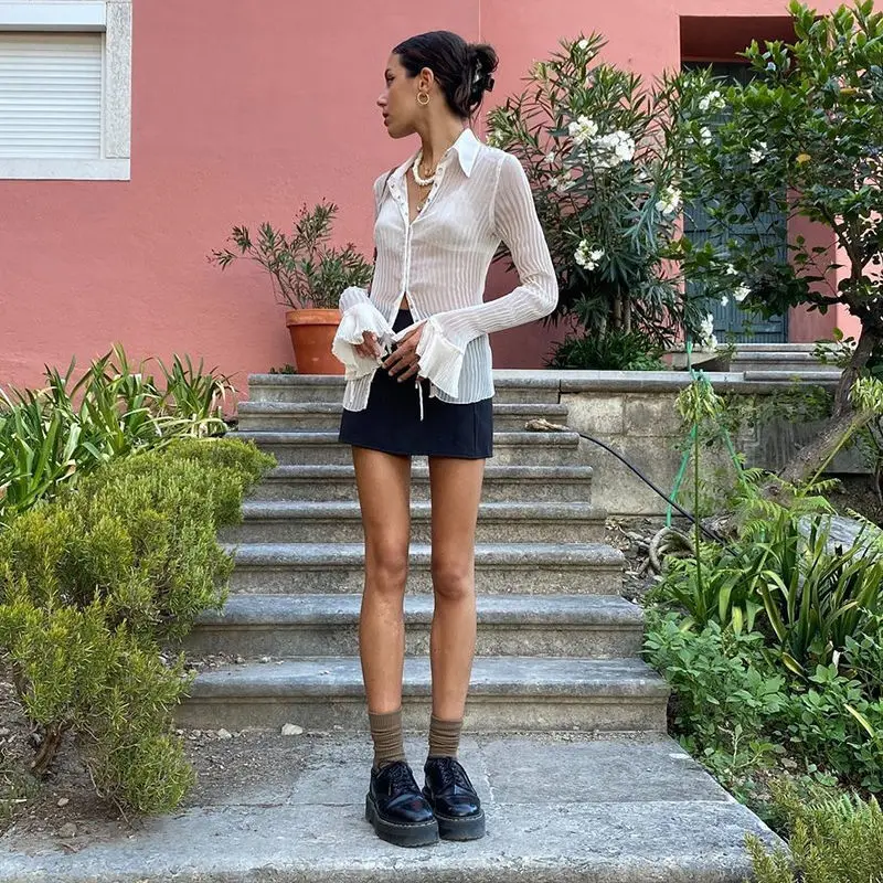 Женская рубашка на пуговицах Dourbesty Y2K, блузки, прозрачный кроп...