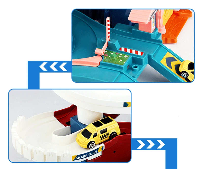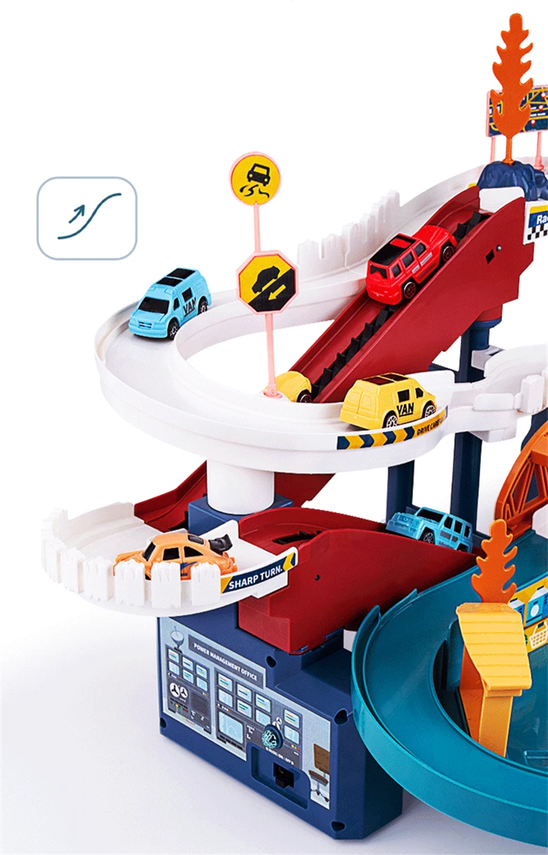 для меня было неожиданностью, что машинки настолько маленькие, они с половину пальца длиной и с палец шириной)) малыш затерялось одну сразу, подозреваю, что остальные также затянутся в пылесос откуда нибудь из под дивана))) где ещё их искать то?))) трек классный, сын в восторге, машинки едут сами, есть подъемный эскалатор, который включается с кнопки, вместе играет музыка) собрать было интуитивно просто, наклейки найти куда клеить - сложнее) доставка около трех недель в Тулу, мы довольны, спасибо!