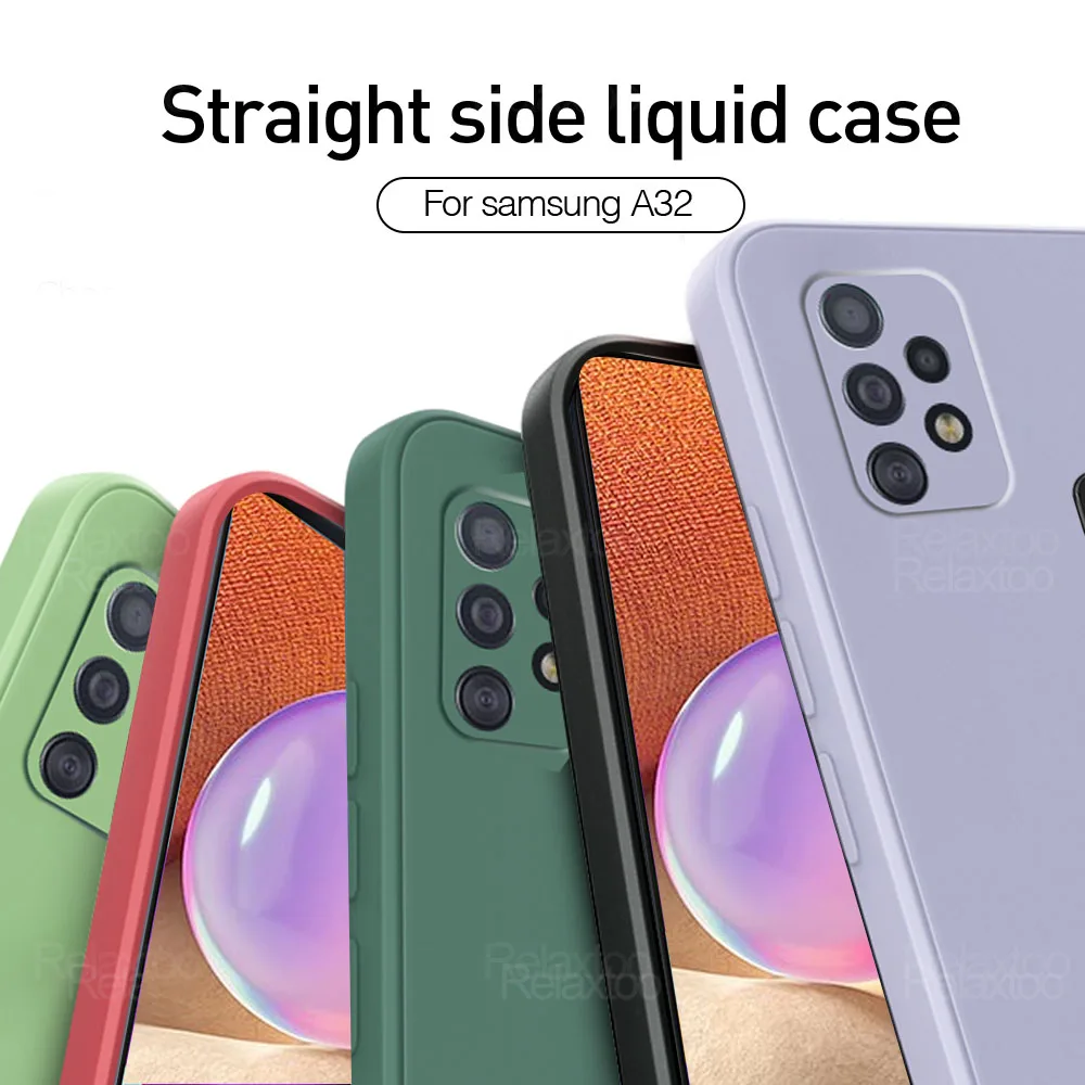 Матовый жидкий защитный чехол с прямыми краями для Samsung A 52S 22 42 72 5G, Мягкий Силиконовый противоударный чехол для Samsung A 32 12 4G
