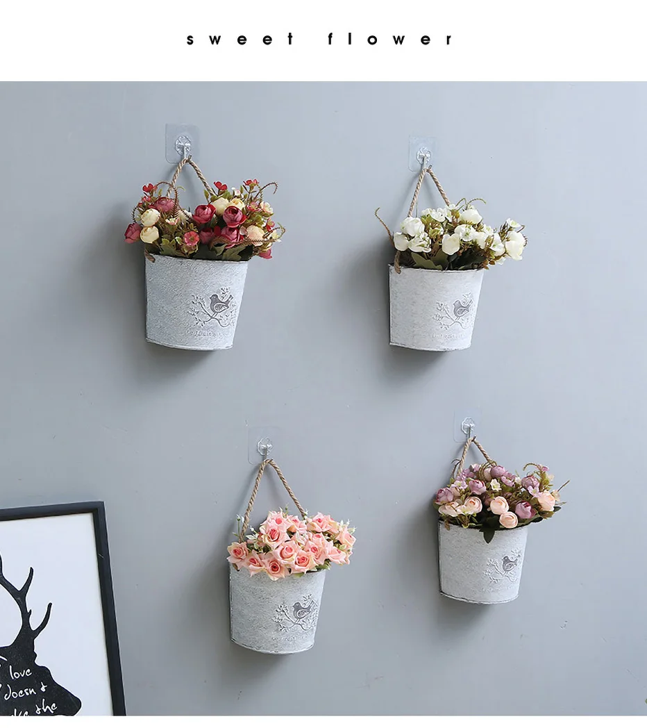 Французский стиль настенный цветочный горшок сад винтажный металлический цветок ваза деревенский висячие корзины для дома