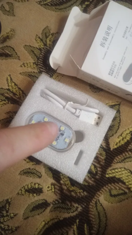 Пришло в Кемеровскую область дней за 20, это хорошо, но ещё дней 10 лежала у КСЕ, ни звонков ни сообщений, не очень служба. Светильник маленький с половинку спичечного коробка, но светит классно. Имеются 2е пластинки 2х стороннего скотча в комплекте и юсб провод для зарядки. Чтобы добраться до usb входа нужно разобрать светильник, снять крышку, на фото видно. Я думал светильник как плафон в машине, но теперь т. к он маленький можно и к потолку Приклеить и на заднюю пластиковую стойку. С продавцом не общался, не было нужды. Рекомендую продавца.