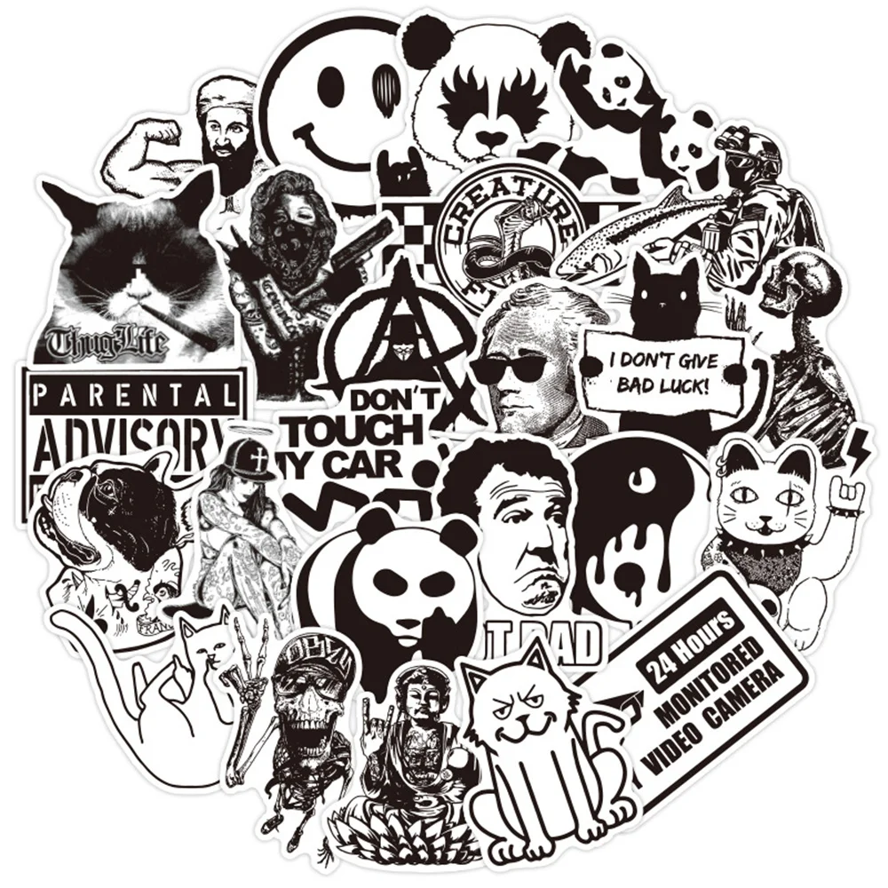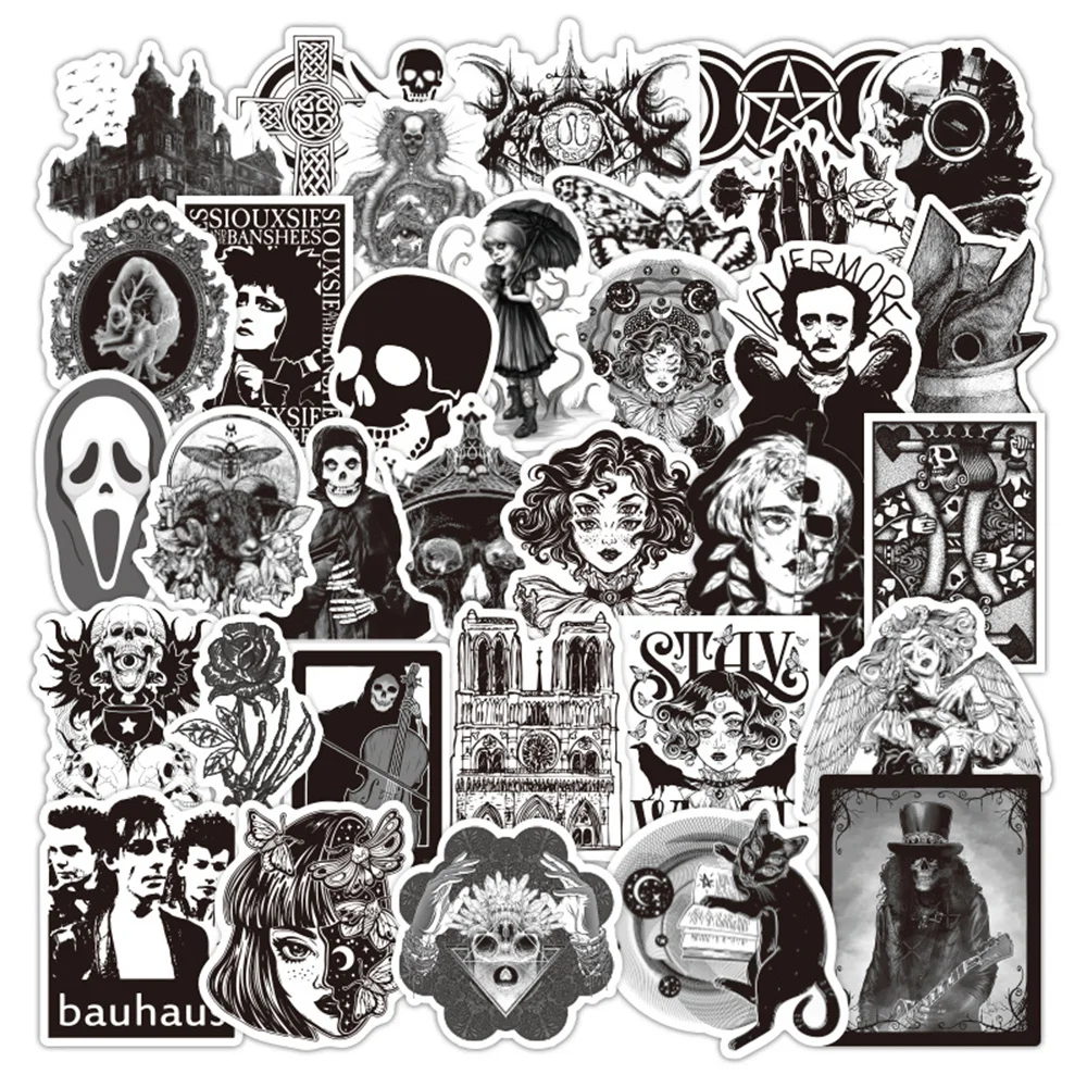 103050 шт. черно-белые готические граффити стикеры в европейском и американском стиле водонепроницаемая доска для скейтбординга оптом