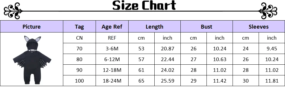 Цвет: черный, серый, зеленый, бежевый, розовый, оранжевый, синий, красныйРазмер: 59-66-73-80-90-95-100-110-120Возраст: От 0 до 3 летМатериал: смесь хлопка, полиэстер, другоеТема: летучая мышь, Хэллоуин, мультфильм, кролик