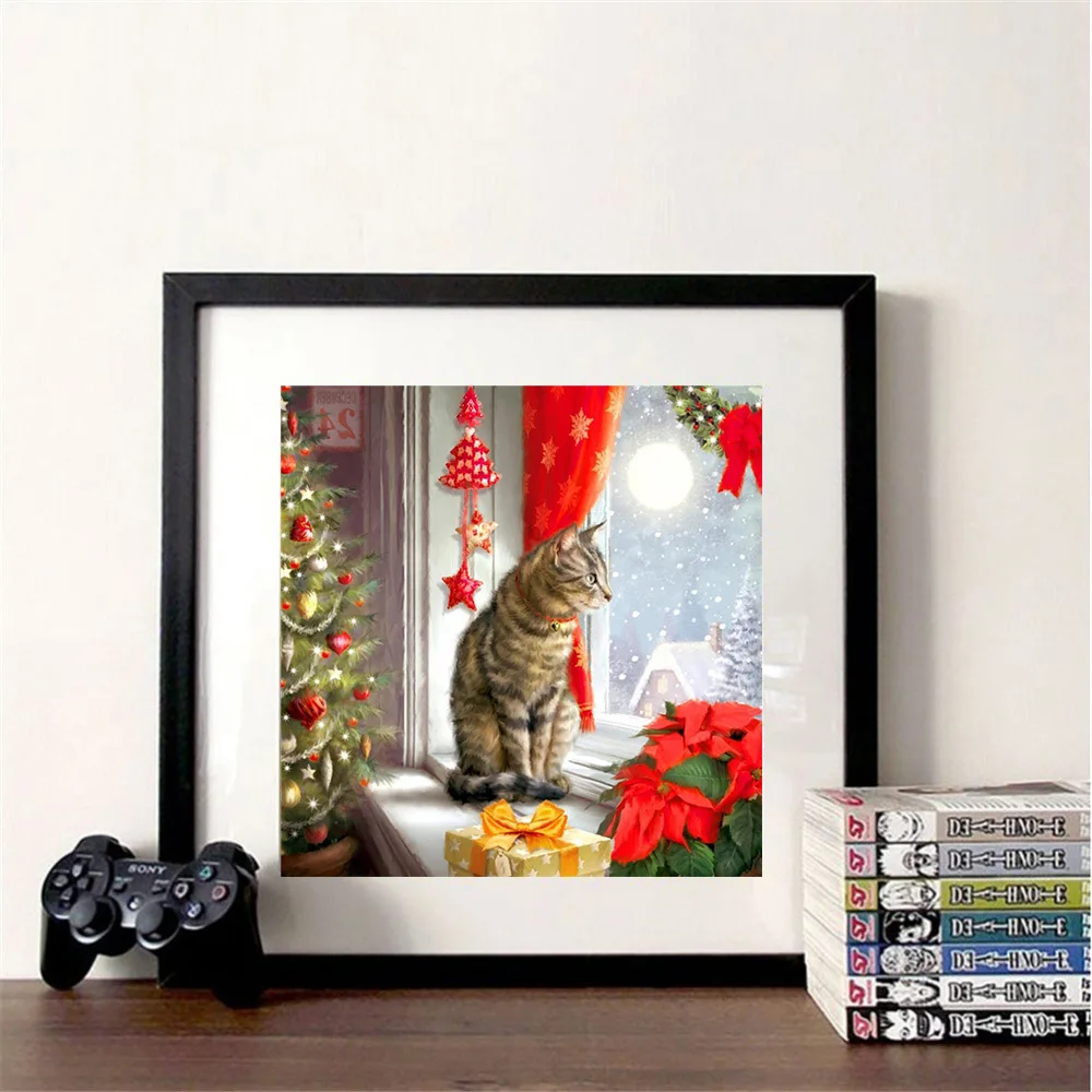 Алмазная 5D картина Huacan сделай сам, вышивка с кошкой, мозаика, Рождественское украшение для дома, животного