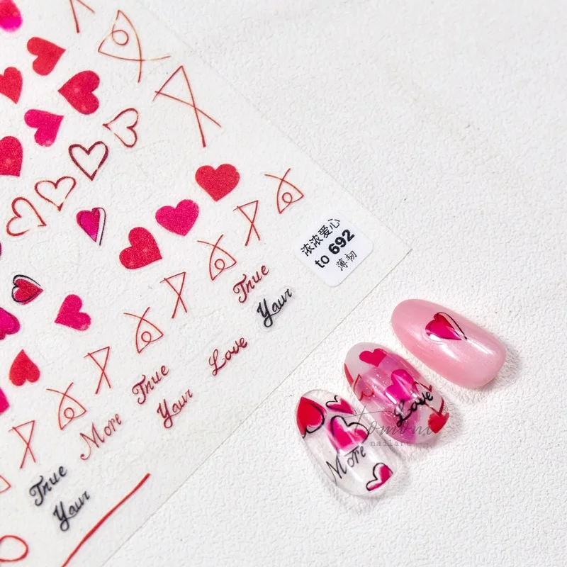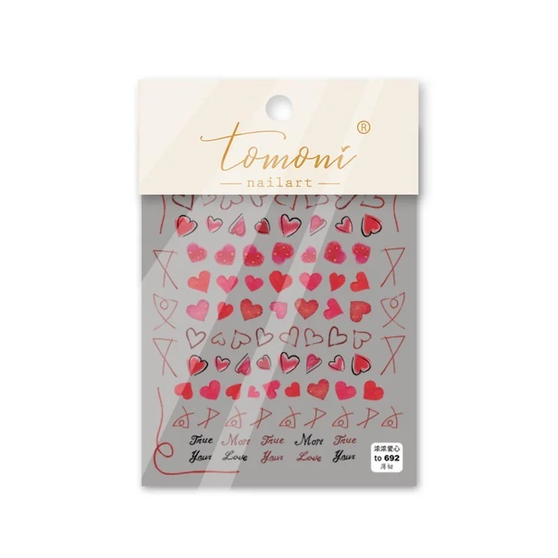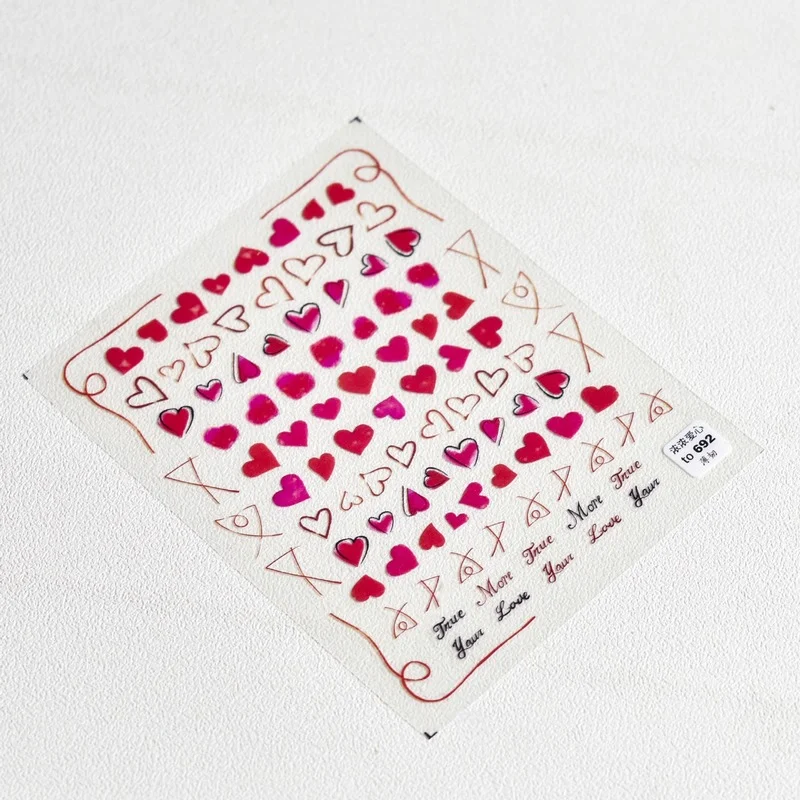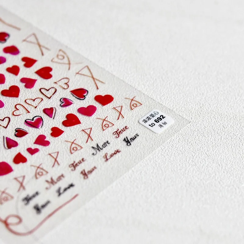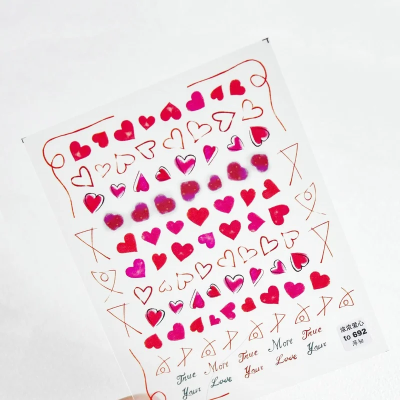 Новые модные однотонные полые рельефные дизайнерские 5D наклейки с красными сердечками для ногтевого дизайна клей для задней части украшения ногтей самодельные наклейки 2021