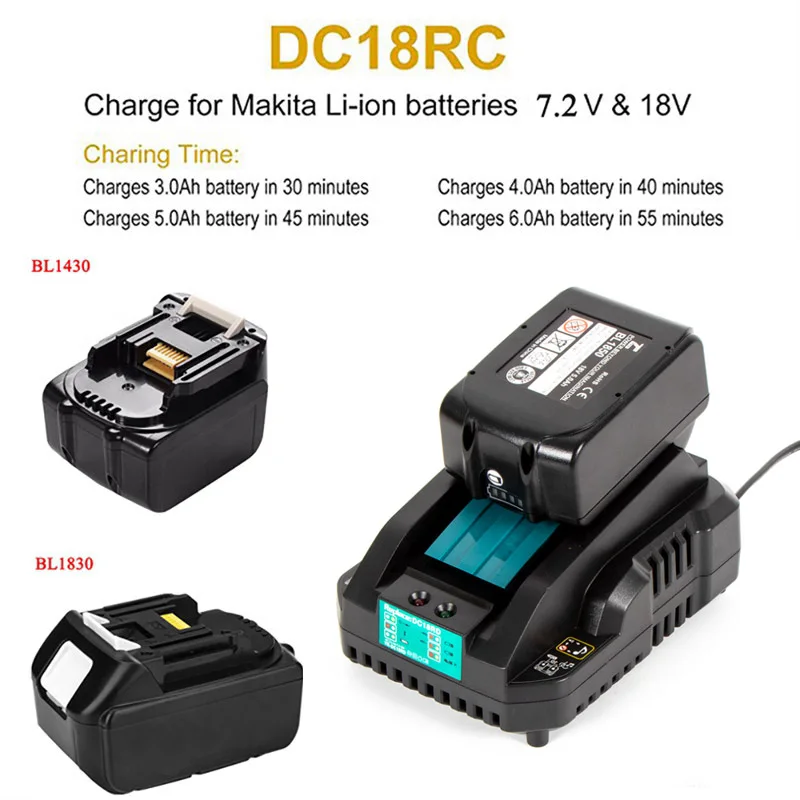 Dc18Rc 14,4 в 18 в литий-ионная батарея зарядное устройство 4A зарядный ток для Makita Bl1830 Bl1430 Dc18Rc Dc18Ra электроинструмент батарея штепсельная вилка европейского стандарта