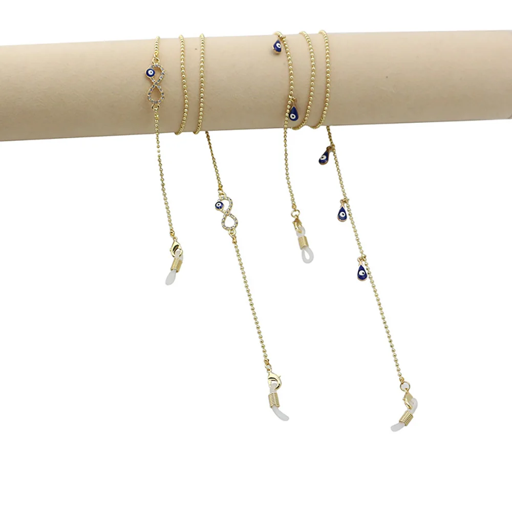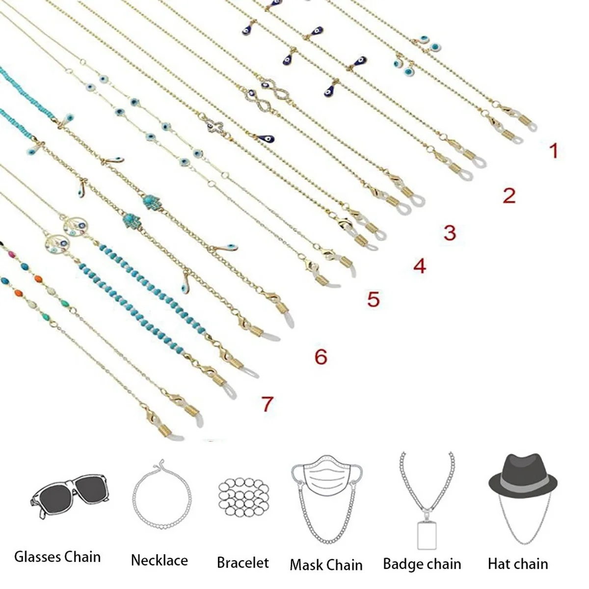 2021 модные студенческие очки с буквенным принтом, крестиком и ладонью, богемные очки со злыми глазами и бисером, солнцезащитные очки, держатель для маски, ремешок с цепочкой на шее