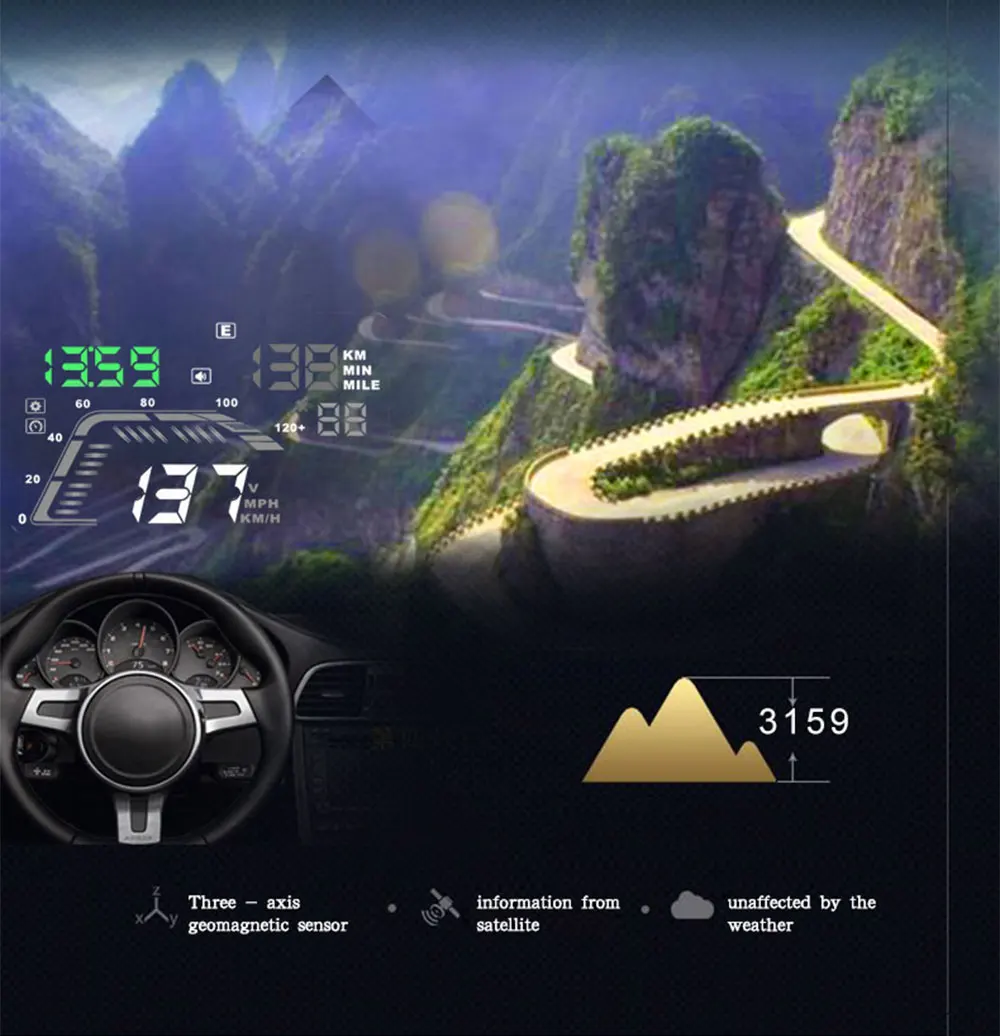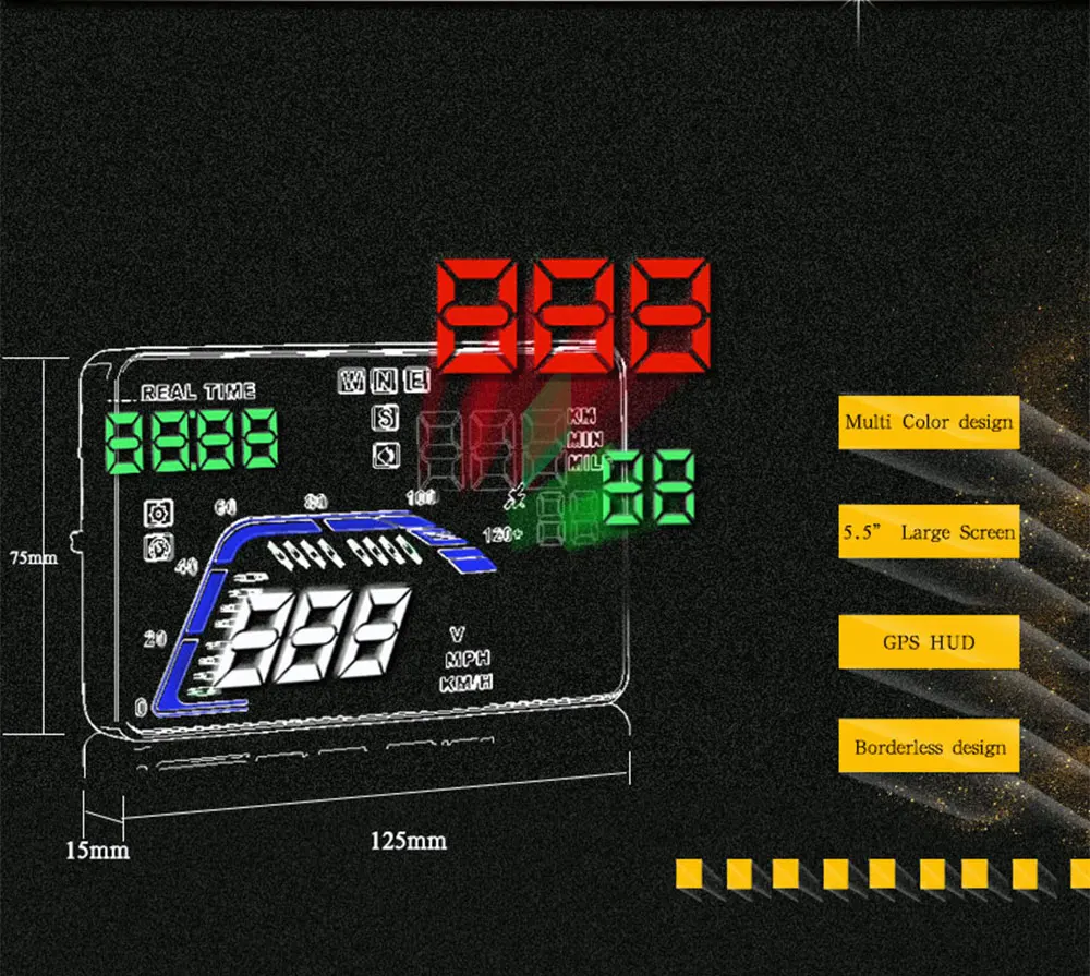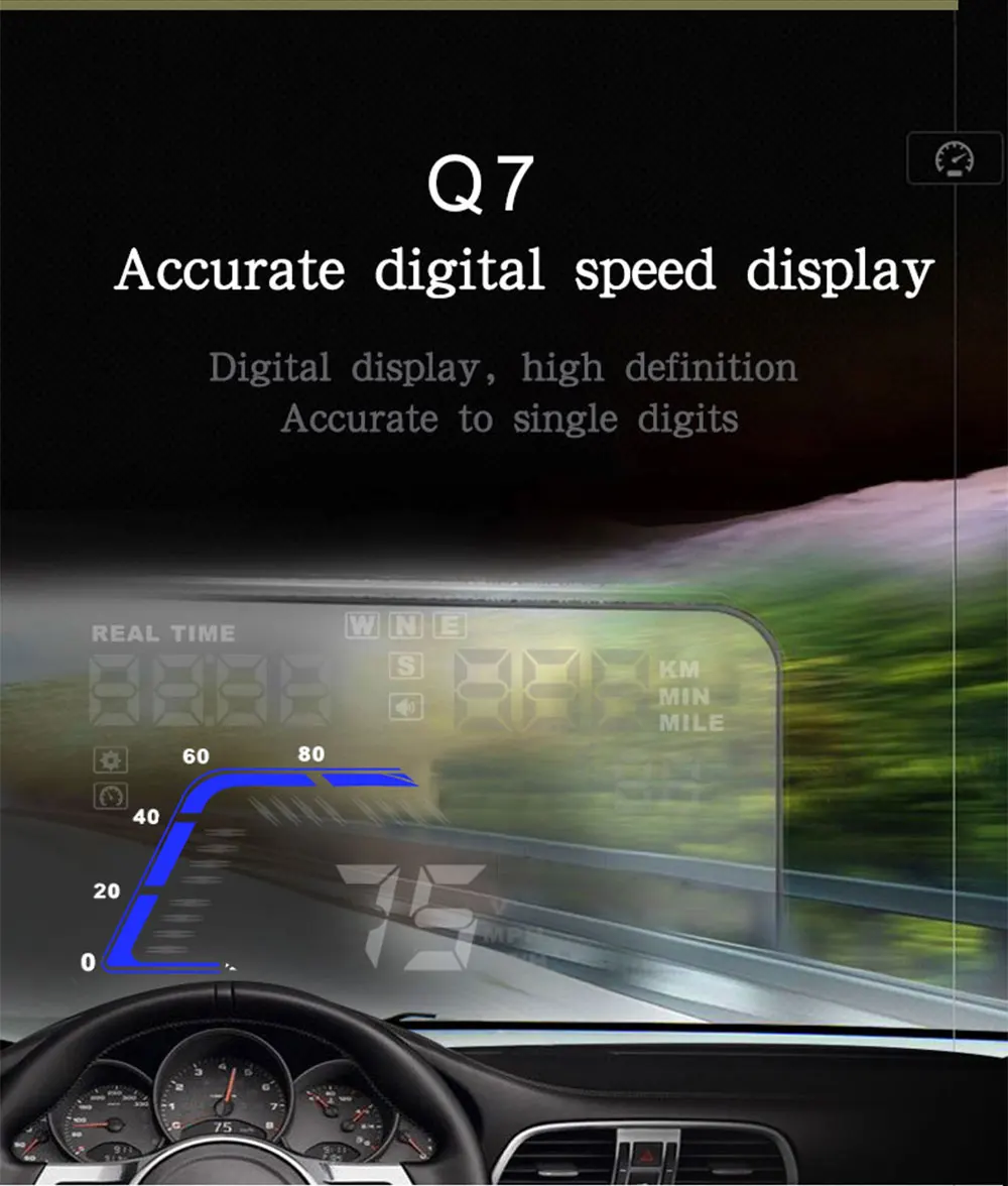 Универсальный проектор на лобовое стекло Q7, 5,5 дюйма, многоцветный автомобильный проектор HUD GPS, спидометры, Предупреждение о превышении скорости