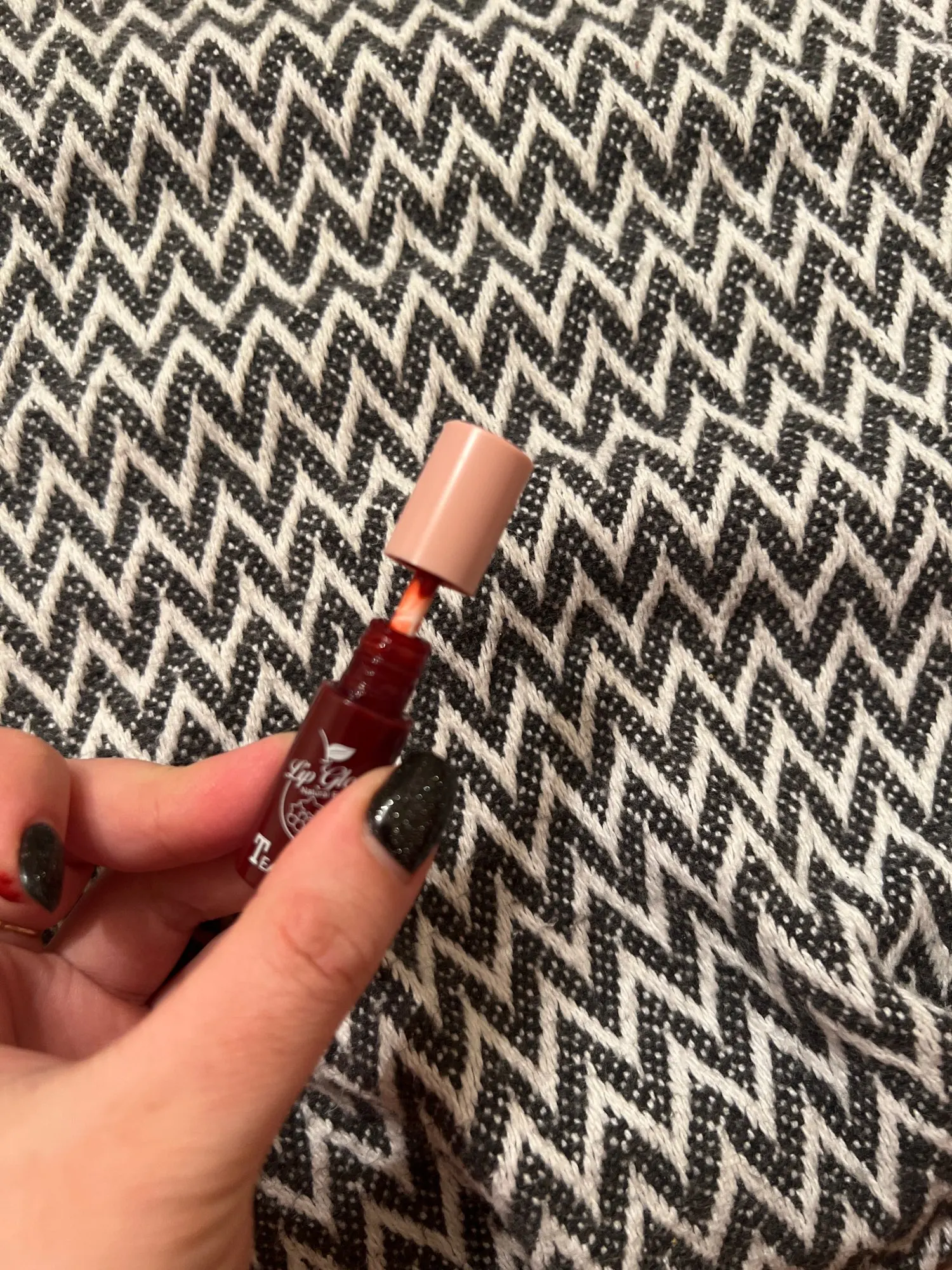 По описанию это блеск, но в реальности это больше идёт как тинт, на губах, если не смыть, смотрится не равномерно, но после смывки оттенок даёт неплохой. Цвет отличается от цвета на фото, он больше кирпичный а не вишневый