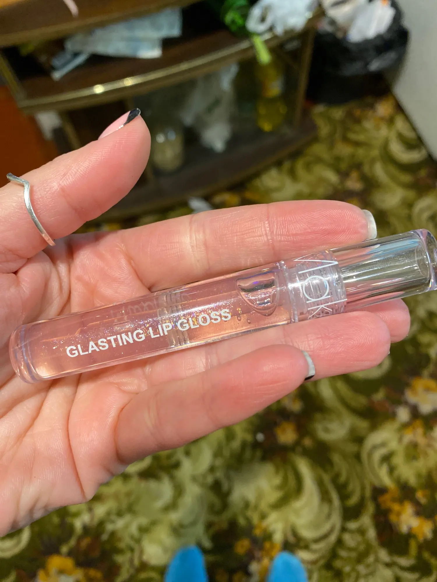 Блеск самый обыкновенный, почти прозрачный, вкусно пахнет. Рекомендую.