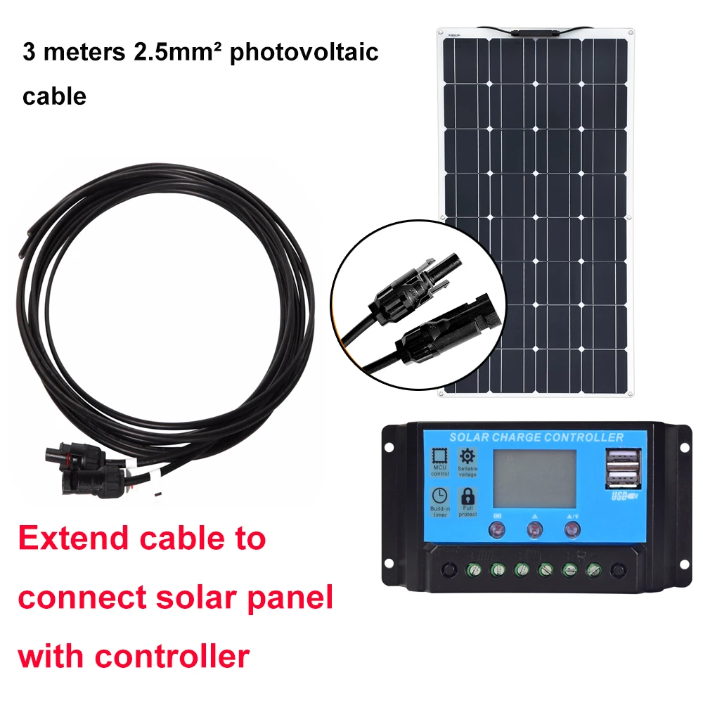 300 Вт Солнечный комплект = 3 шт 100 Вт 12 в гибкие солнечные панели +12V/24V 30A контроллер солнечного зарядного устройства+1 комплект 3 м кабель с PV разъемом + 1 комплект 3 м кабель с зажимом аллигатора + 1 комплект 3 в 1 адаптер