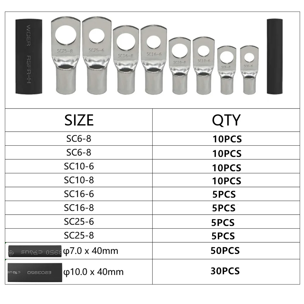 140220 шт. SC оголенные Луженые Медные кольцевые наконечники, клеммы для электрического кабеля, клеммы для аккумулятора, носа, припой, обжимной провод, соединительная трубка в комплекте