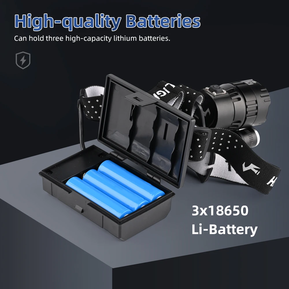 Фонарь налобный светодиодный P199 с аккумулятором 18650, 16 ядер, з...