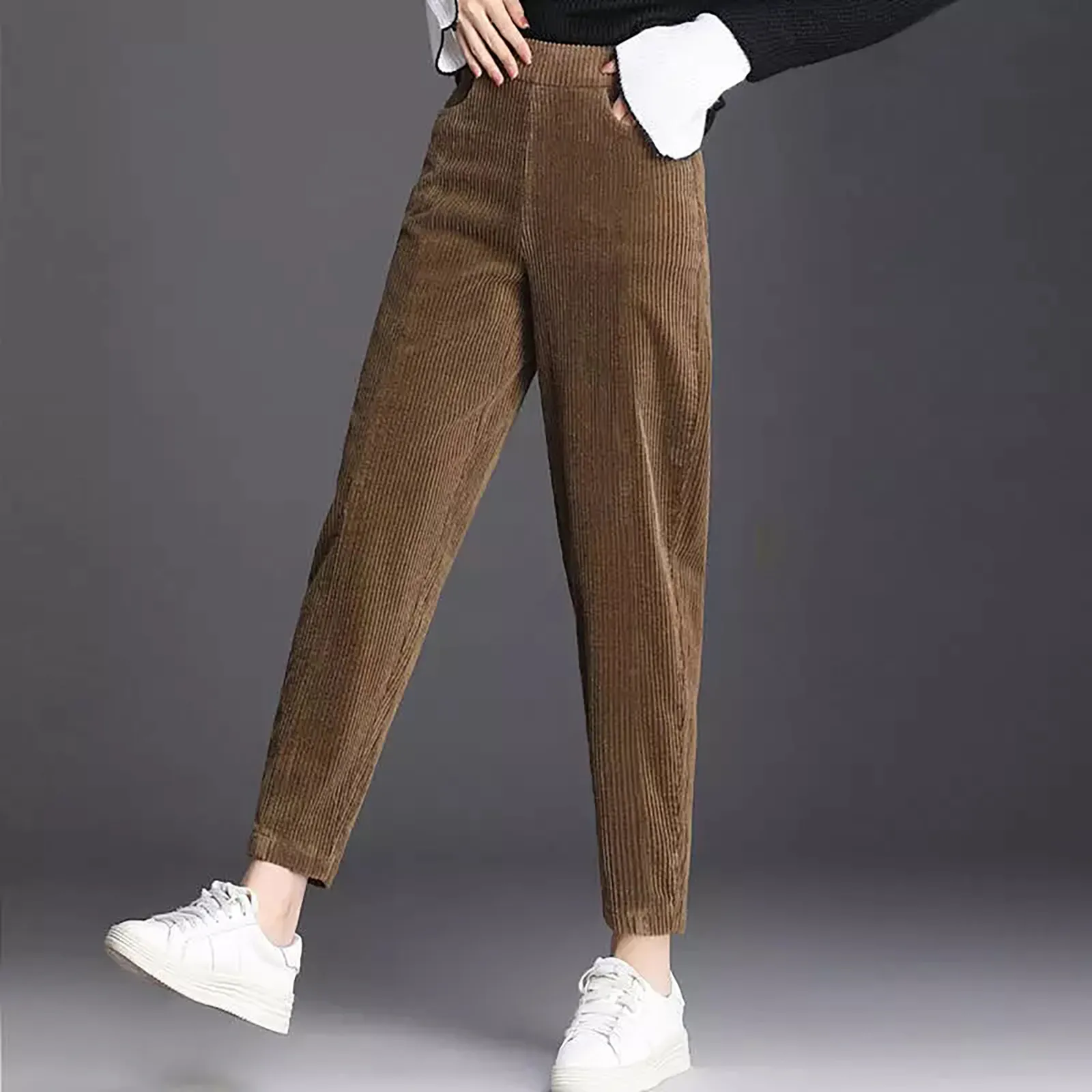 Брюки женские зимние плюшевые однотонные до щиколотки с эластичным поясом и карманами