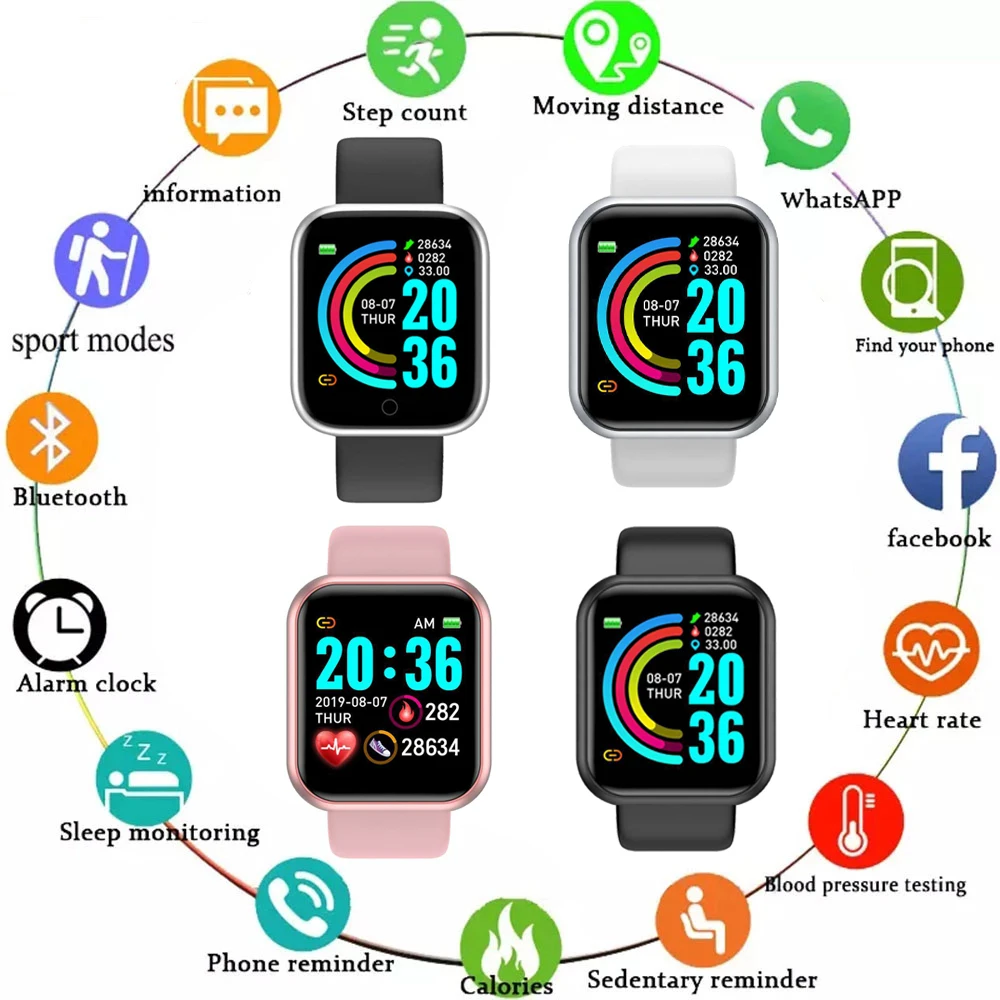 Технические характеристики:Тип: умные часыКоличество: 1 шт.Материал: ТПУЦвет: черный/розовый/белыйЕмкость аккумулятора: 150 мАчРазмер экрана: 4,15*3,63 см/1,63*1,43 дюймаУпаковка Размеры: 12,2*8,1*3,2 см/4,79*3,18*1,26 дюймов