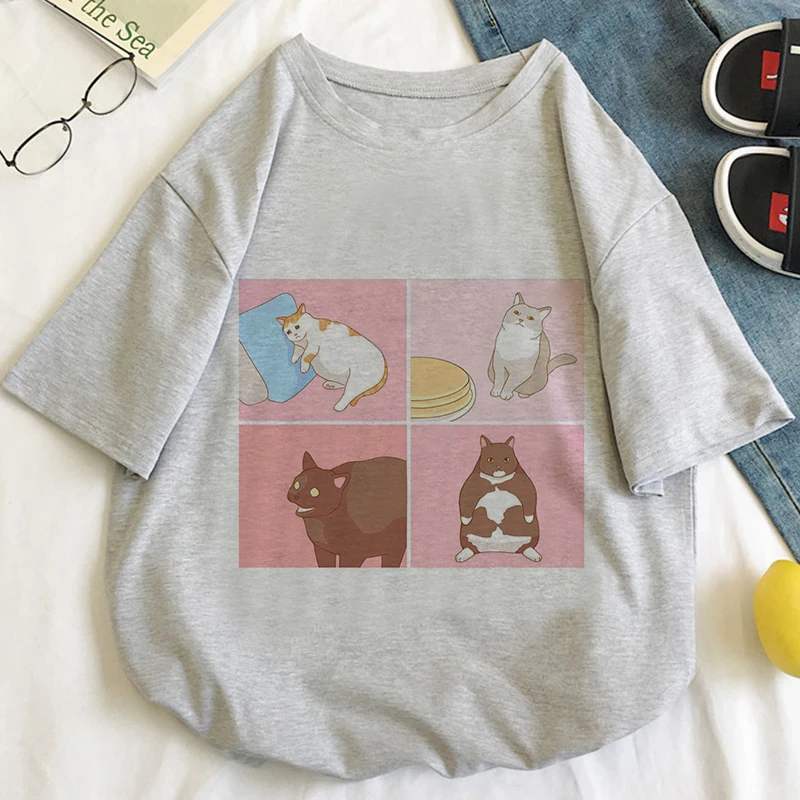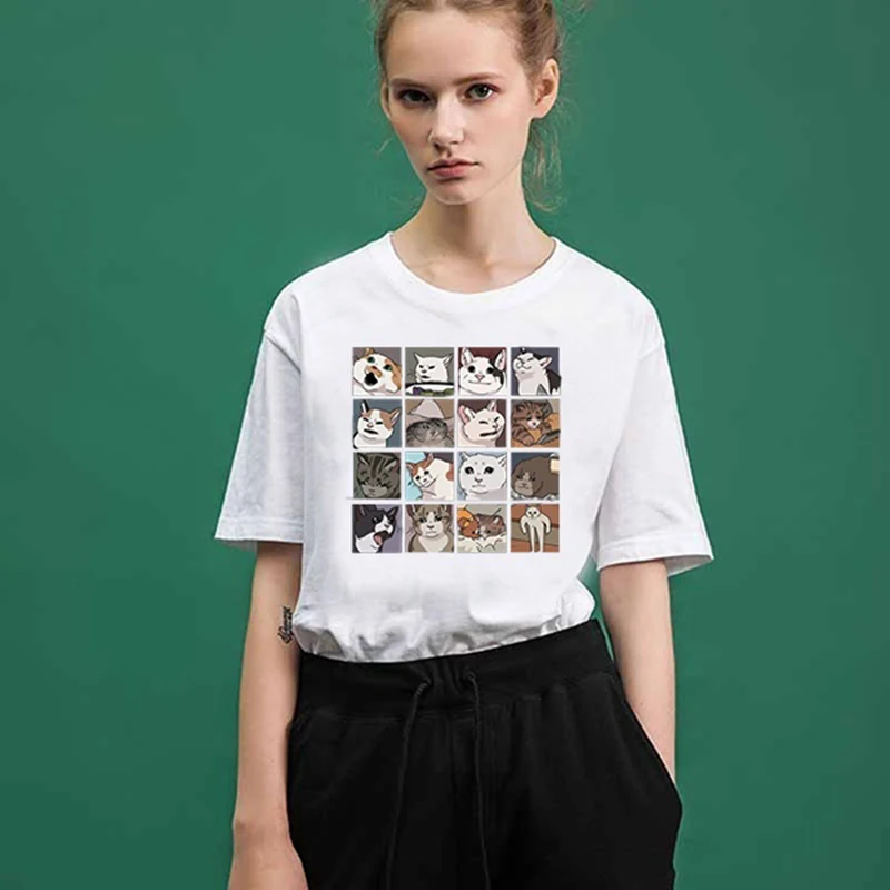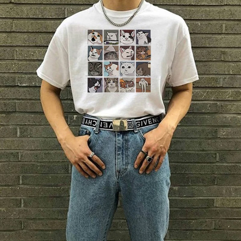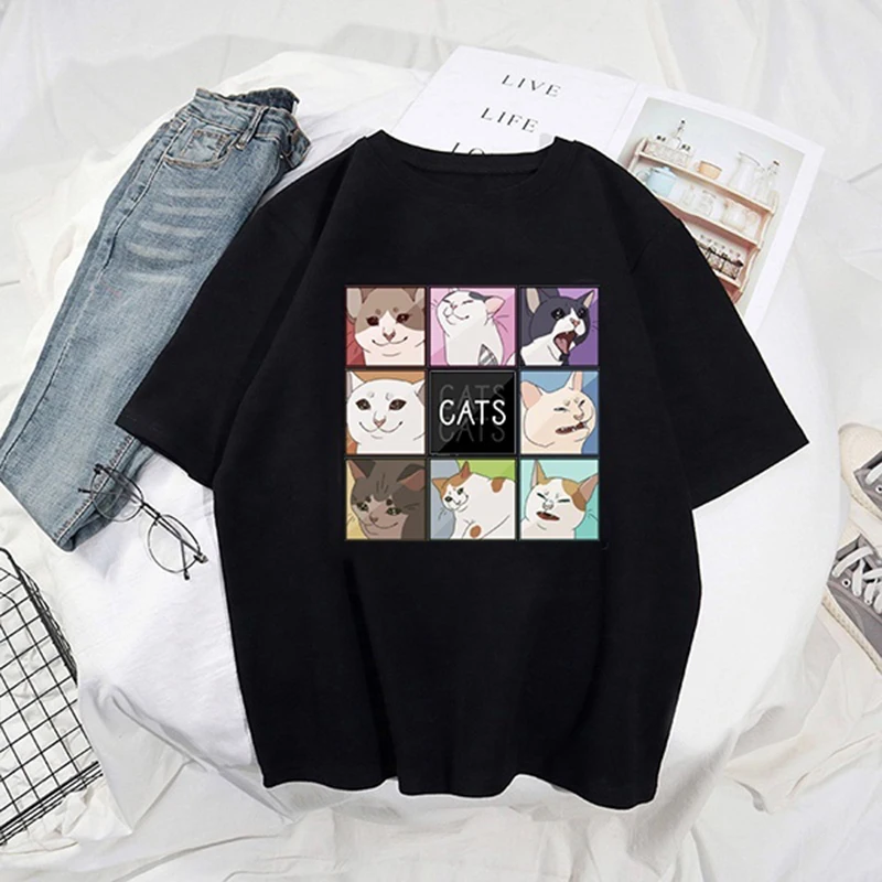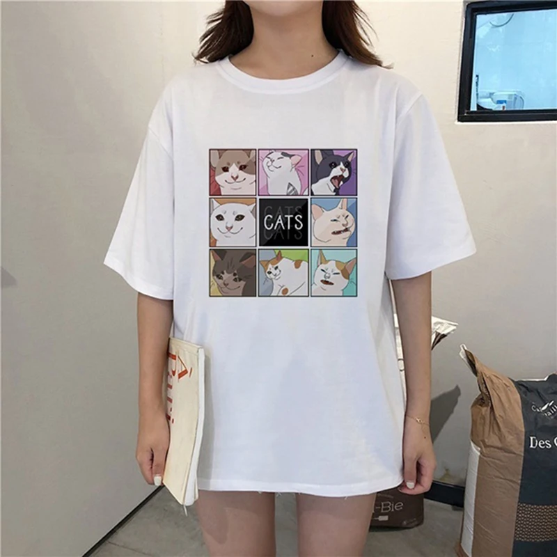 Летняя футболка Ulzzang с мультяшным хиппи смайликом кавайным котом Женская Футболка Harajuku, винтажная Свободная Женская футболка с коротким рукавом, одежда
