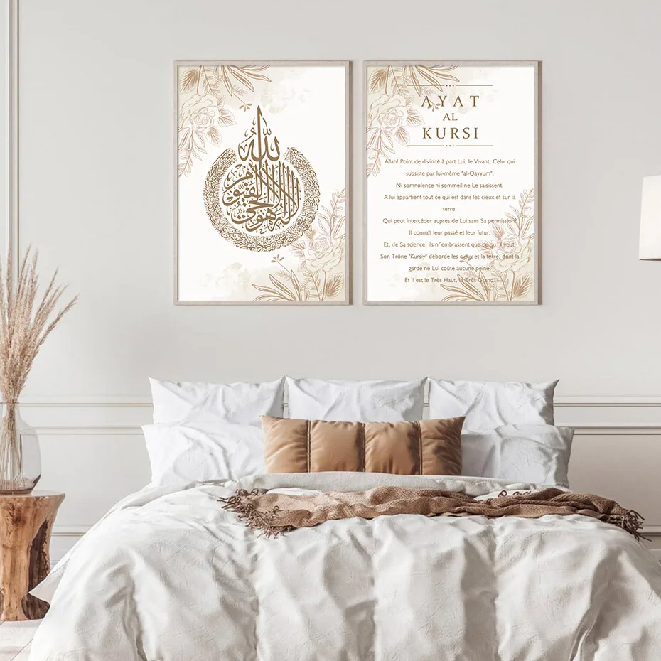 Плакаты с изображением мусульманской каллиграфии аят аль-КУРСИ Корана, французских цветов, настенные художественные холсты рисунок, напечатанная картина для гостиной, домашнего декора